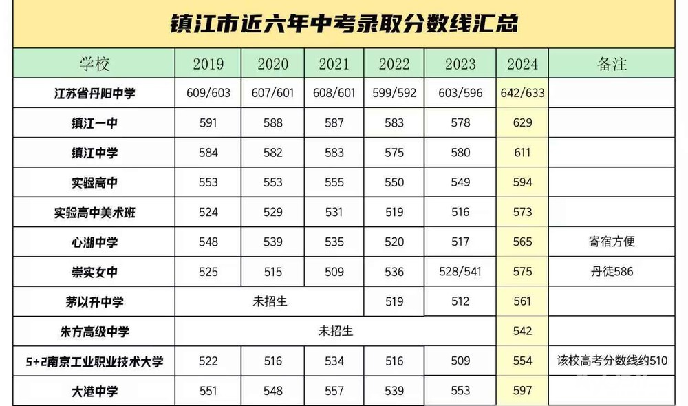 » 镇江市近六年中考录取分数线汇总