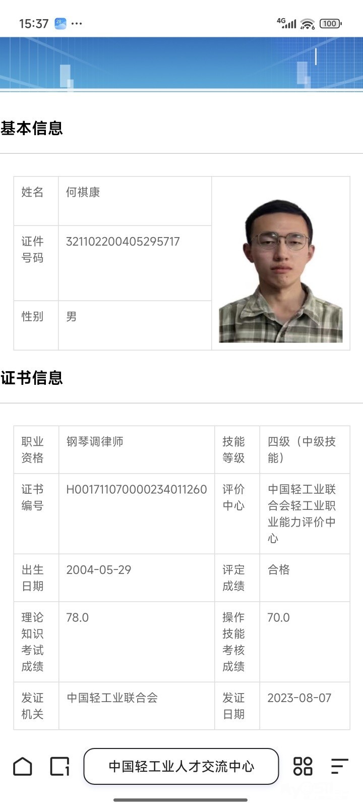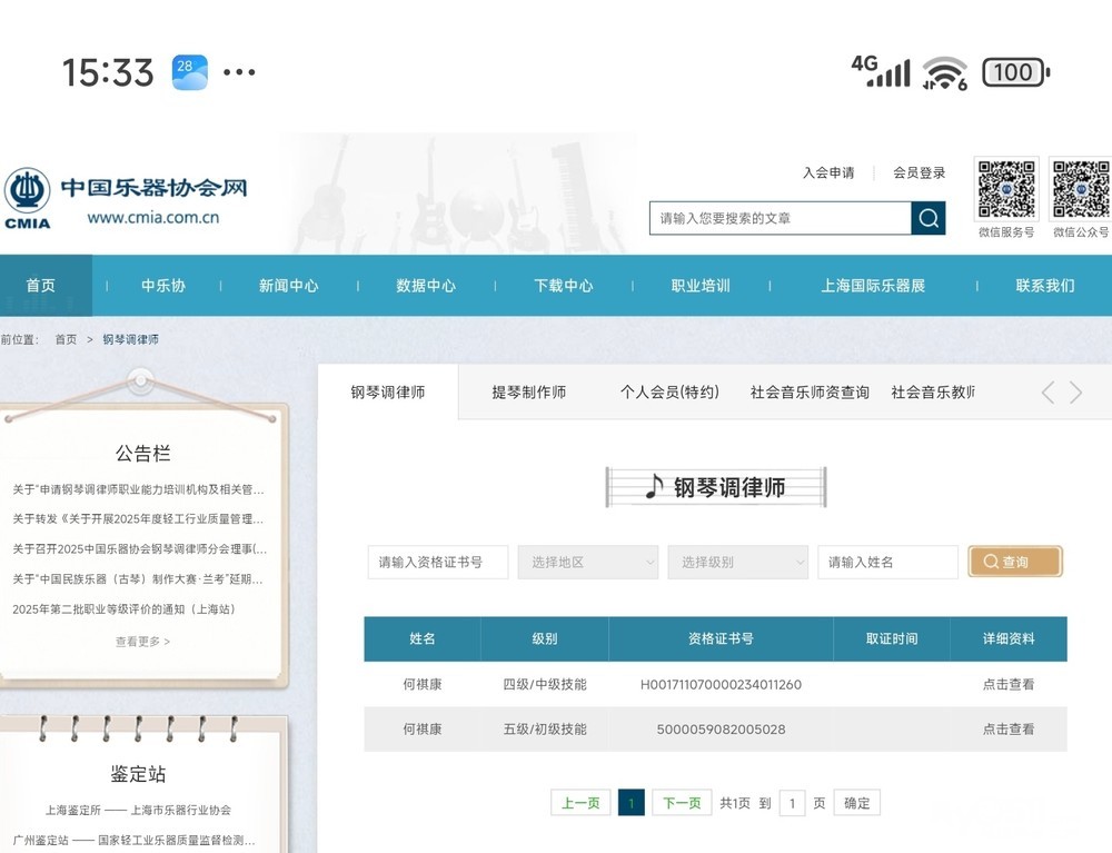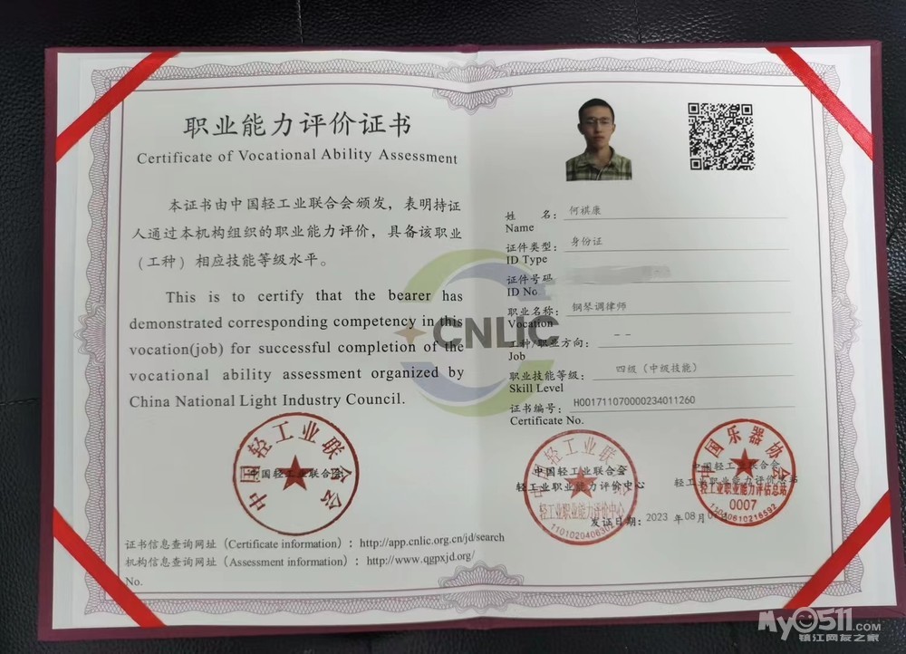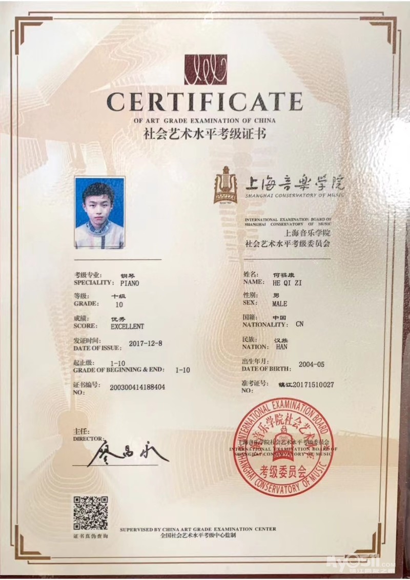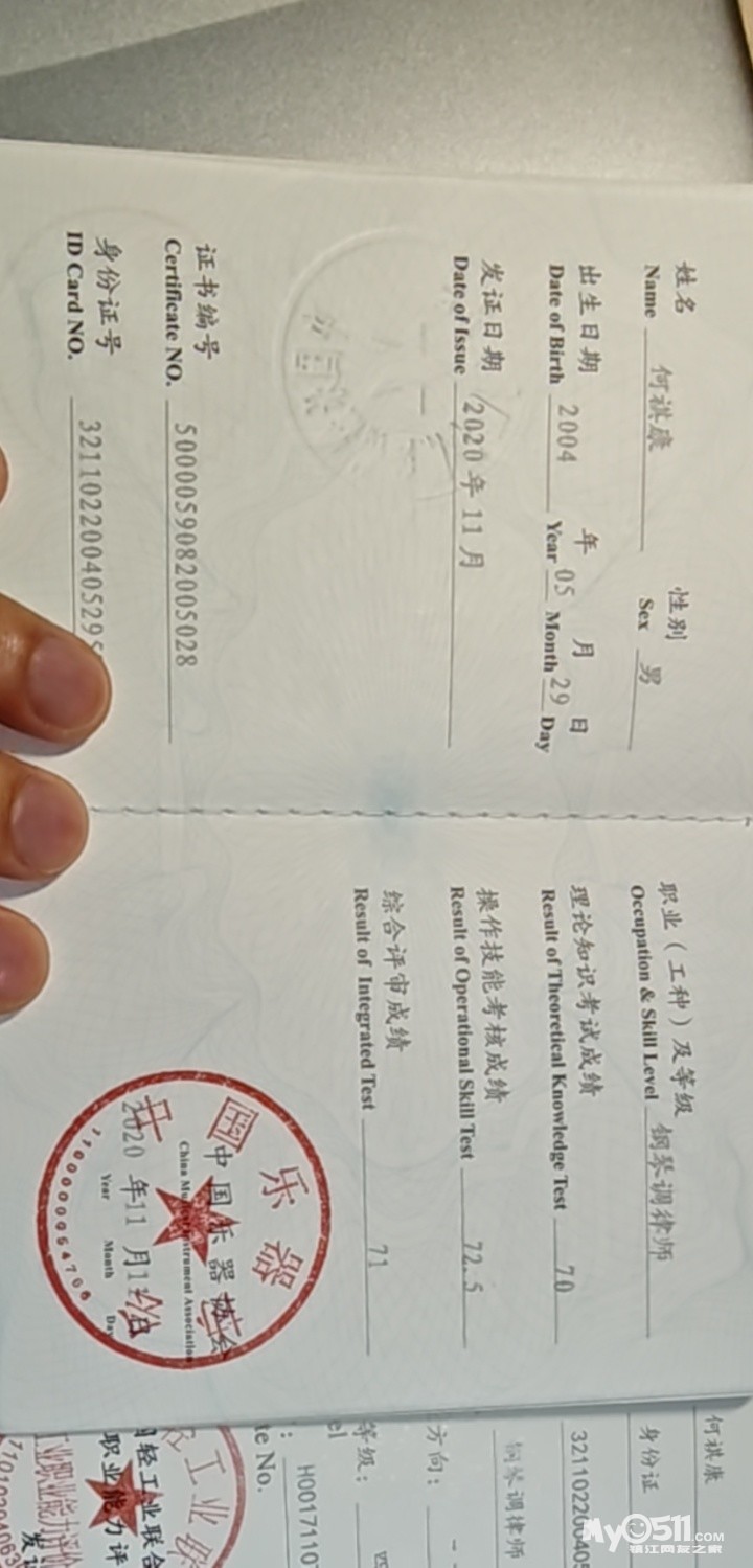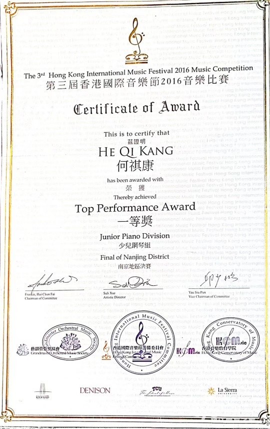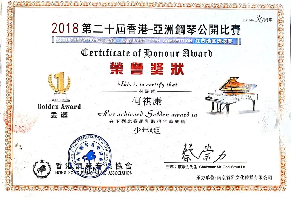 考取过中国乐器协会钢琴初级、中级调律证书,以及上音十级证书,多次钢琴比赛获一等奖。