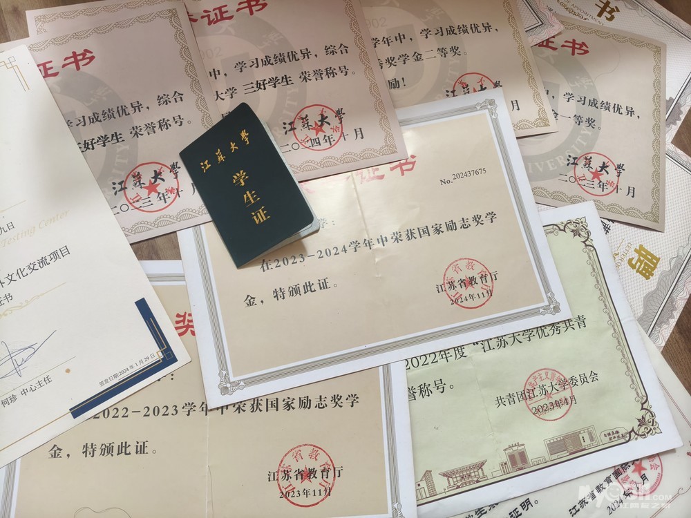 1.奖项:获校三好学生三次,获校一等奖学金一次,二等奖学金两次,三次国家励志奖学金,两次次恒顺奖学金,获江苏省大学生海外文化交流项目获证书,获校第十二届数学建模竞赛中二等奖,获校第十二届星光杯课外学术科技作品竞赛二等奖。