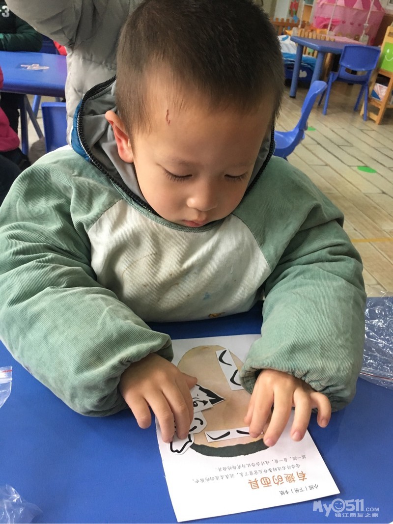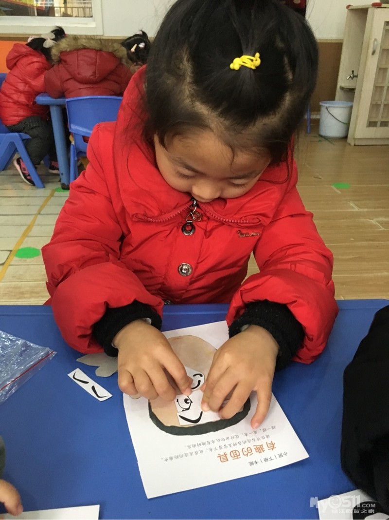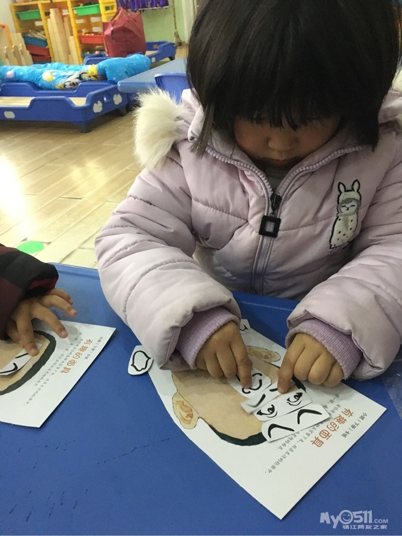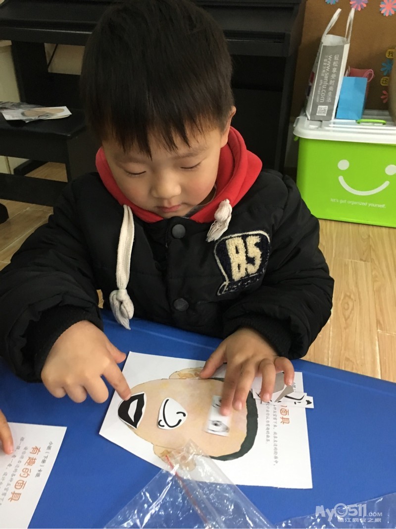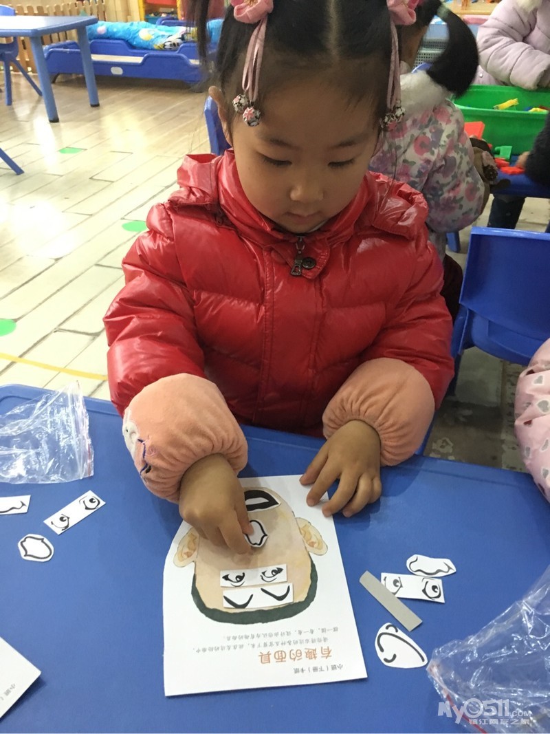 今天的数学活动《好玩的面具》让幼儿知道五官的具体位置,如:眼睛在眉毛的下面,鼻子在眼睛的中间……
