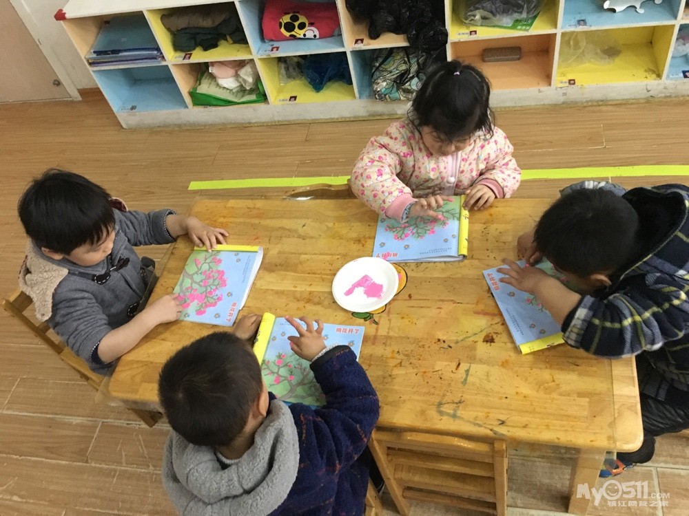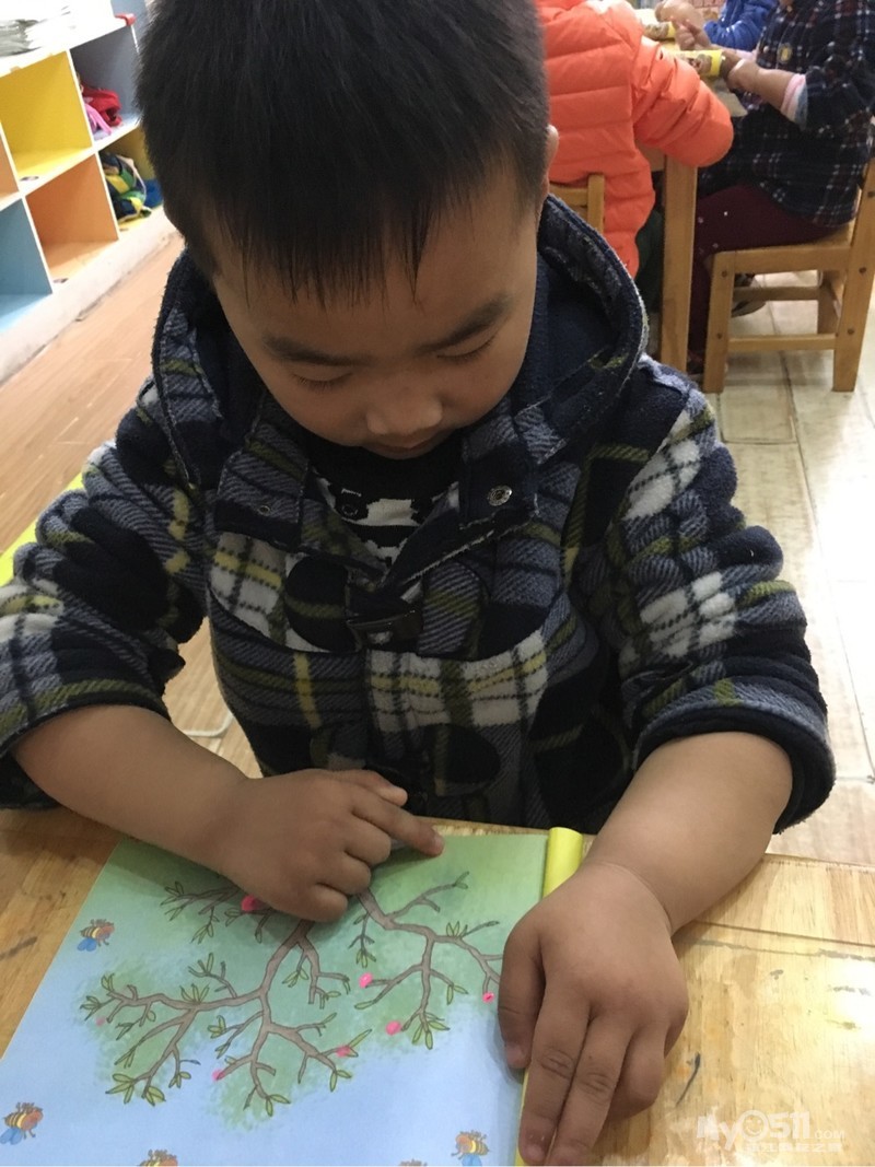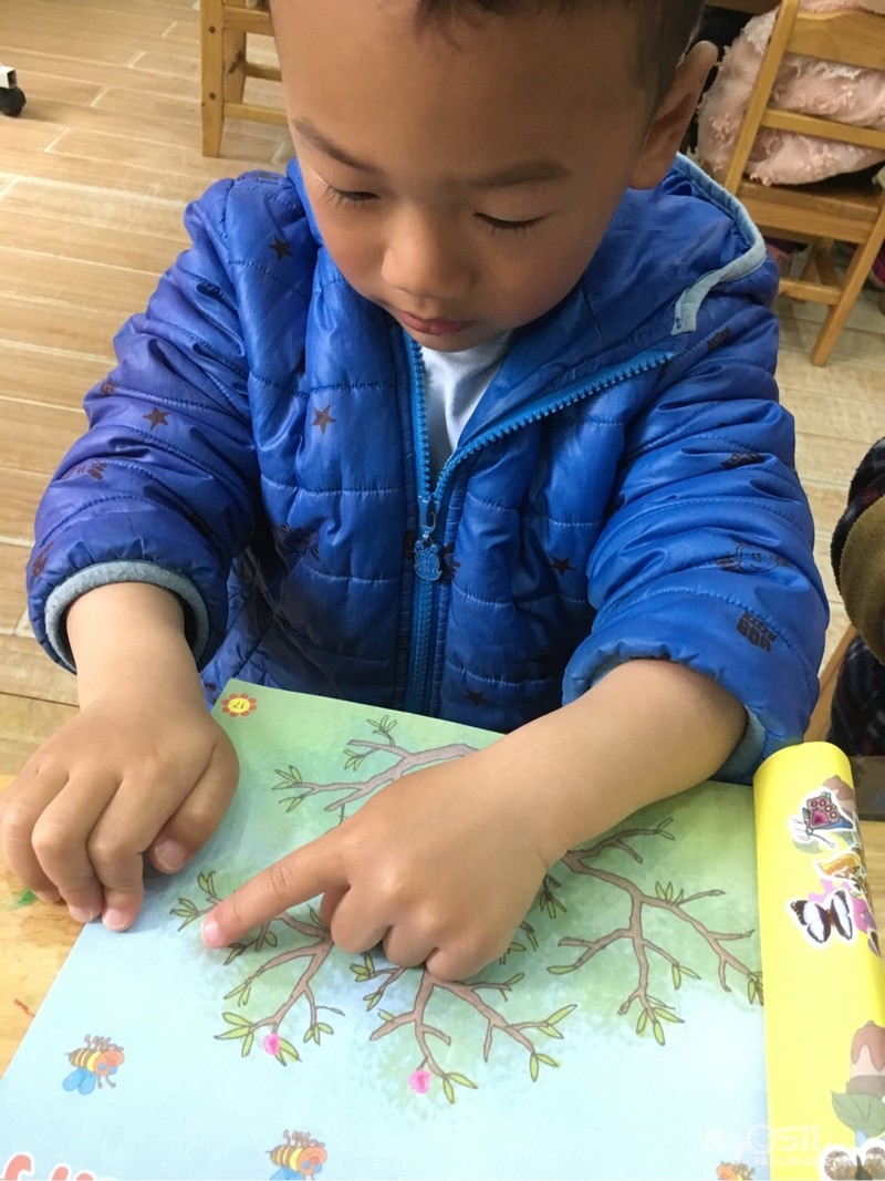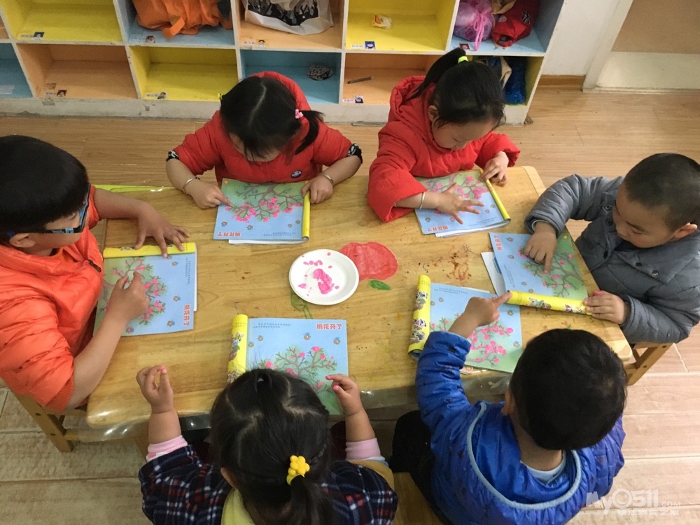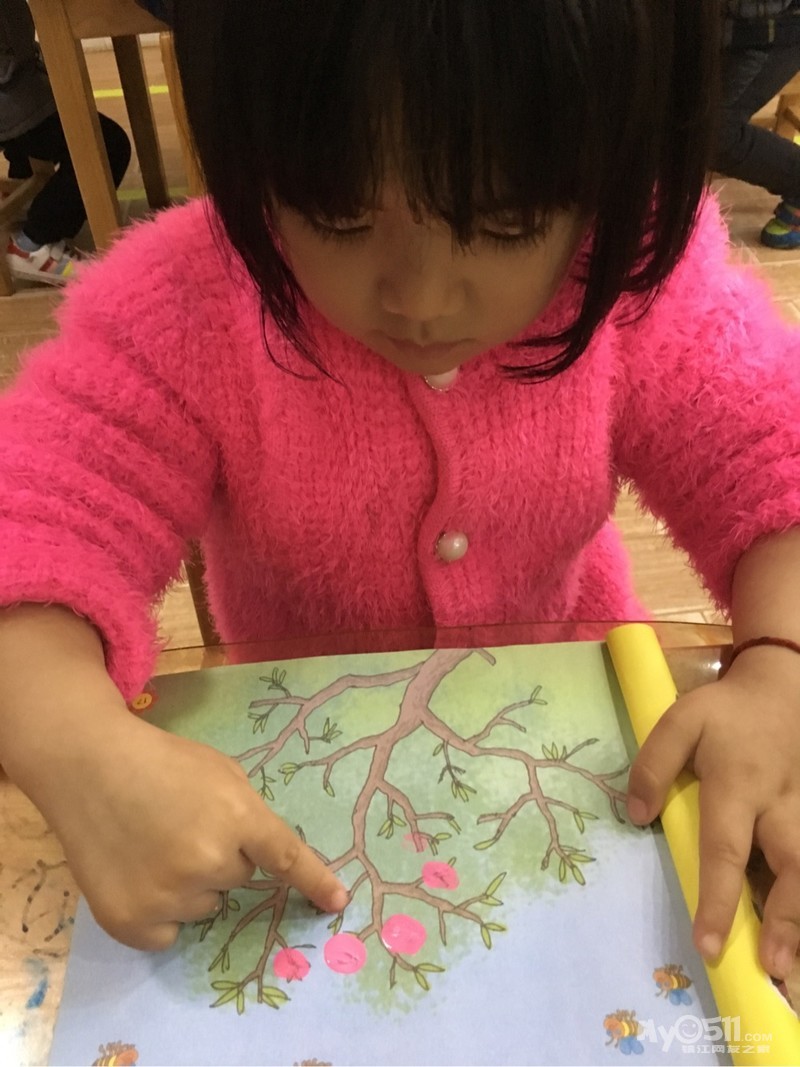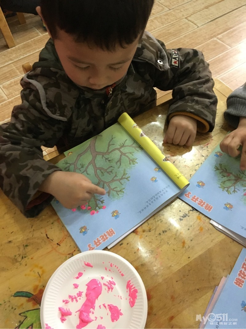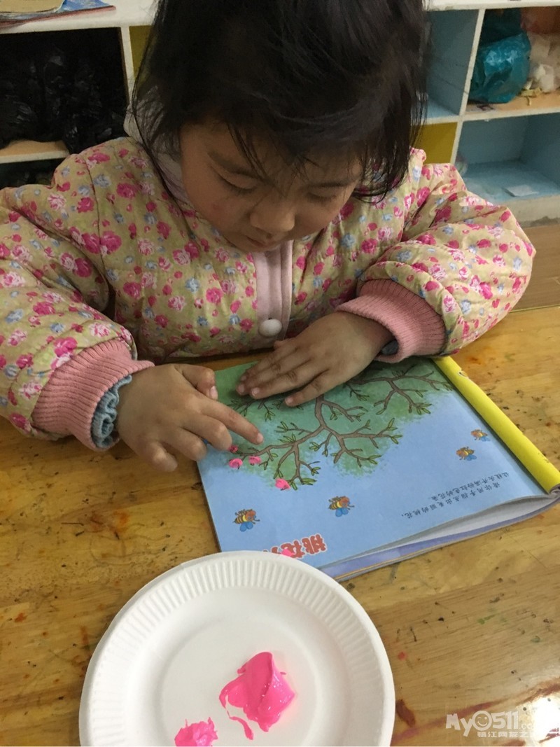 > 2017年4月6日小三班美术活动手指点画《桃花开了》