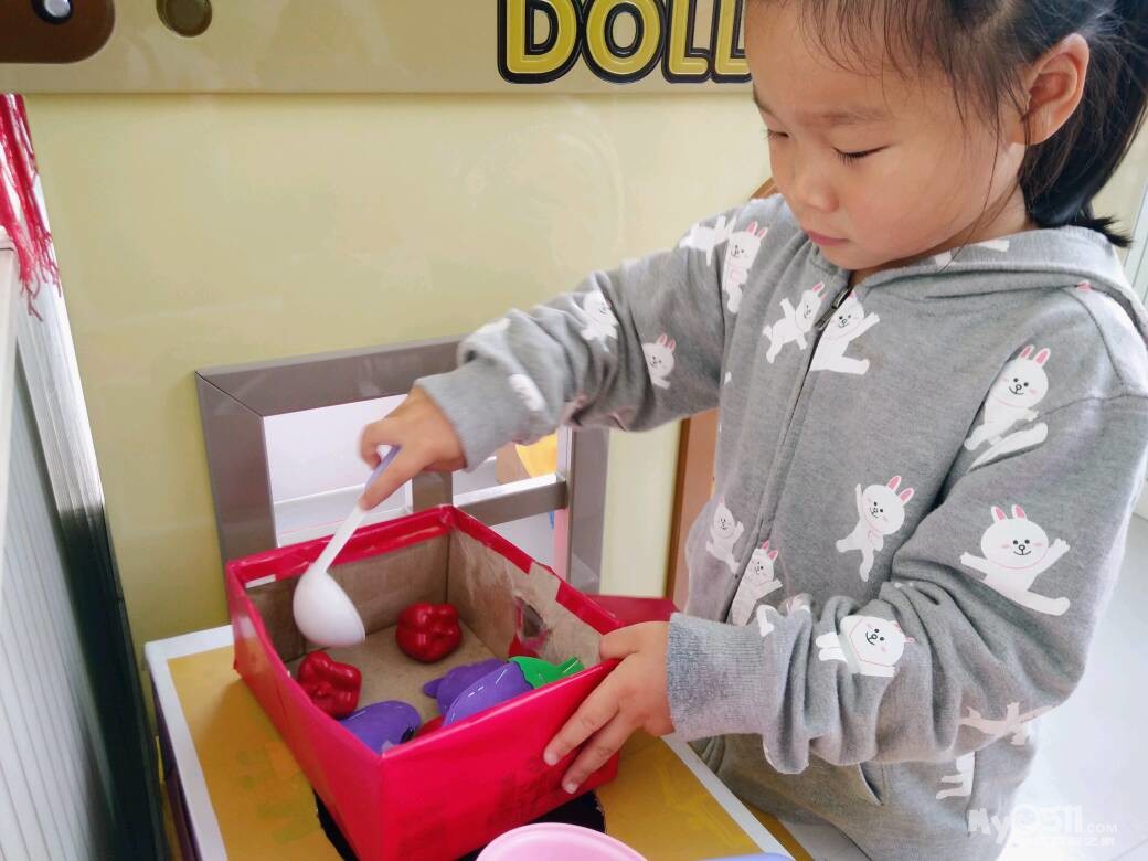 上午的户外活动,每个孩子都非常有兴趣,并积极的参与其中,在农耕区摘菜、挖土,然后在娃娃家切菜,炒菜,喂娃娃,动手能力得到了提高。