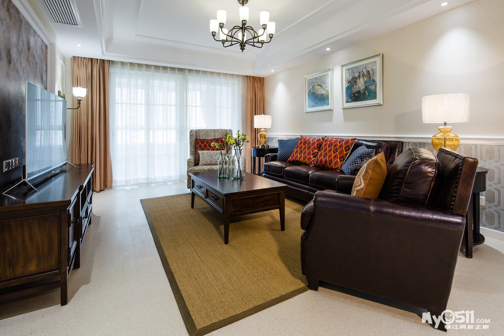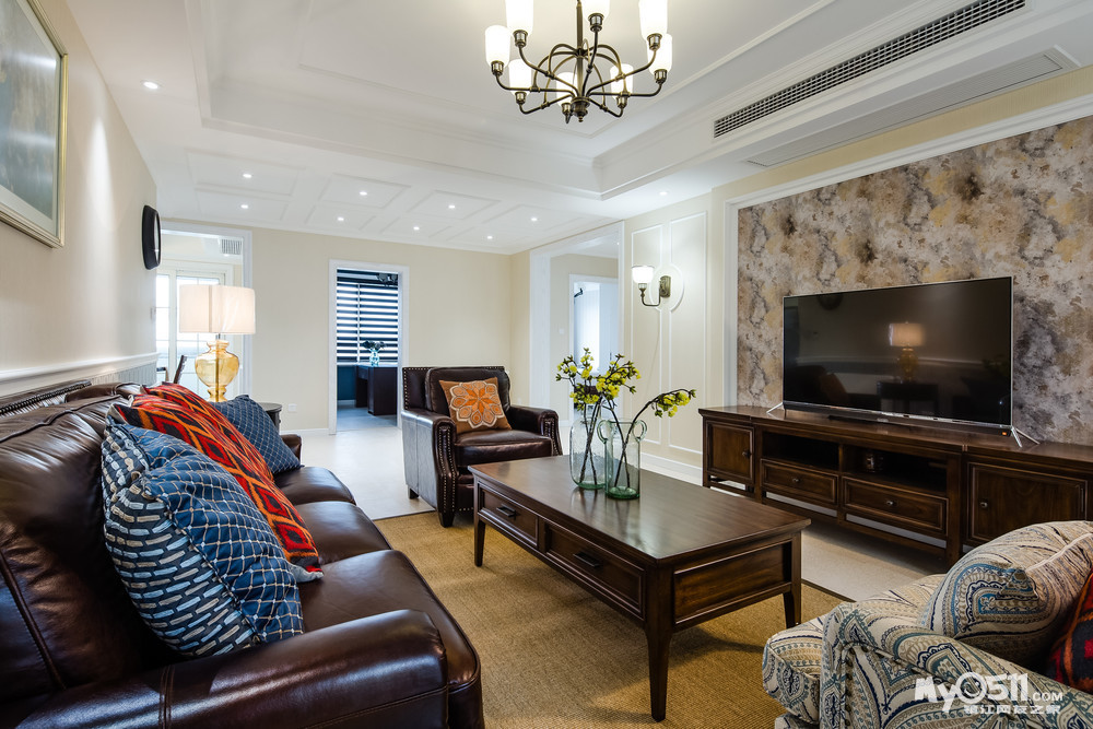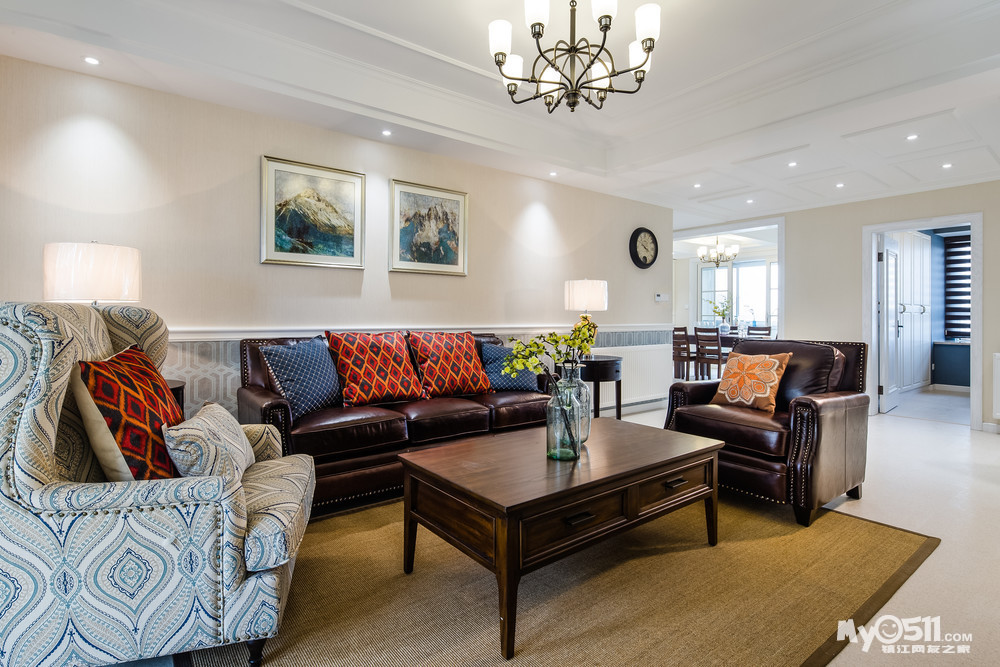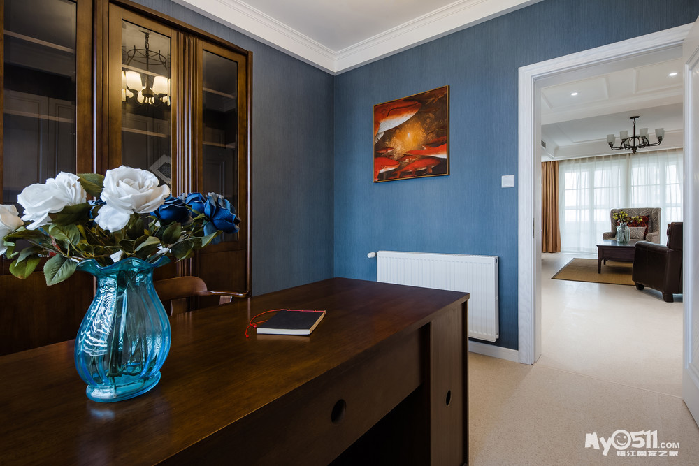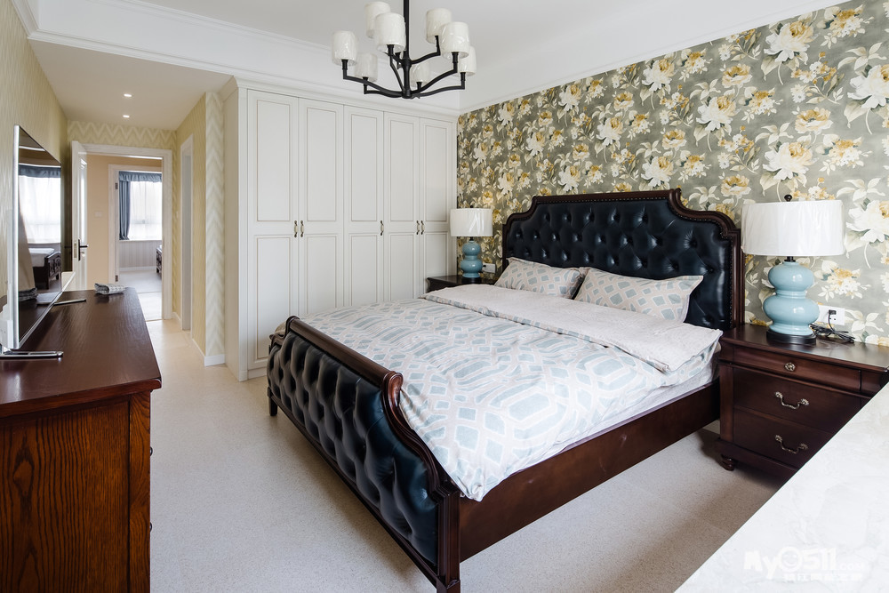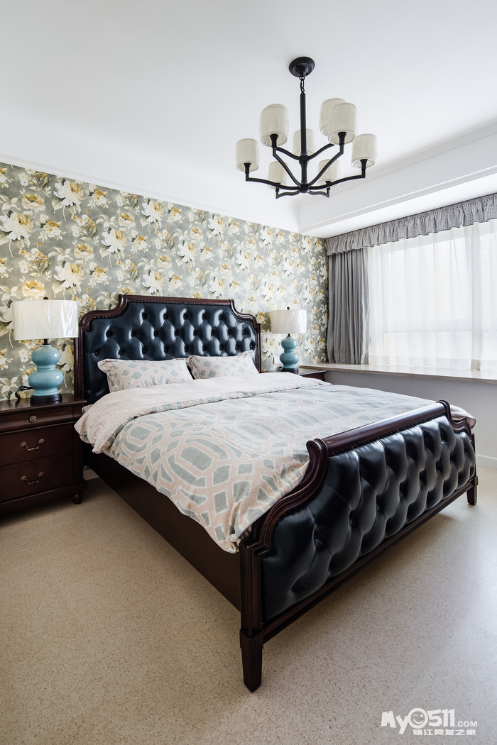 繁花似锦般的壁纸,仿佛蕴含着无限的生命力,使整个空间富有张力却并不显轻浮之态。沉稳大气的美式家具于浅色墙面以及地面营造出的素雅氛围中更显醇厚。在影影绰绰的灯光晕染之下,体现了美式的浪漫和优雅。呈现出一个娴静犹如花照水,行动好比风拂柳的理想住所。