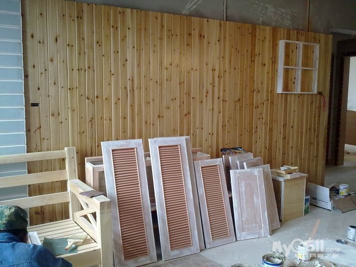 油漆 木器漆部分除了沙发 基本上已经做好了  现在已经开始批墙面