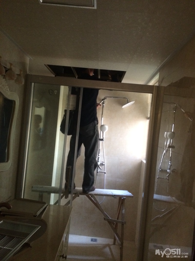 装修公司疏忽,卫生间上的热水器排烟管尺寸不对,又请人来重新打孔。友情提醒:如果热水器排烟管在卫生间顶上走,一定要选择安装平衡式热水器~