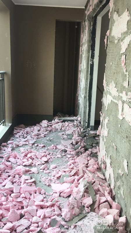 2017年12月26日开始凿墙,我们家的格局自认为还是不错的,需要凿除的墙和浇筑体不是很多,主要是北卧的窗户要凿个门出来,还有就是北卧和阳台的保温层的拆除,再有就是阳台移门的拆除。