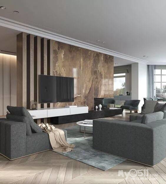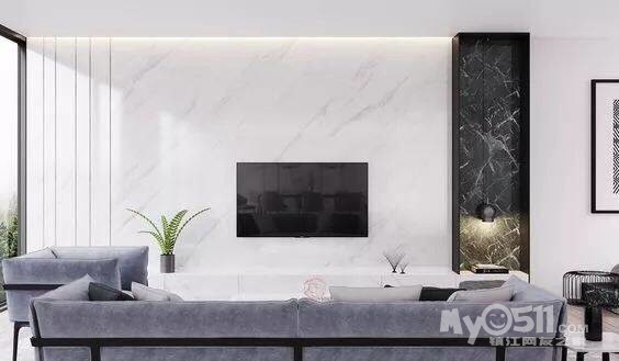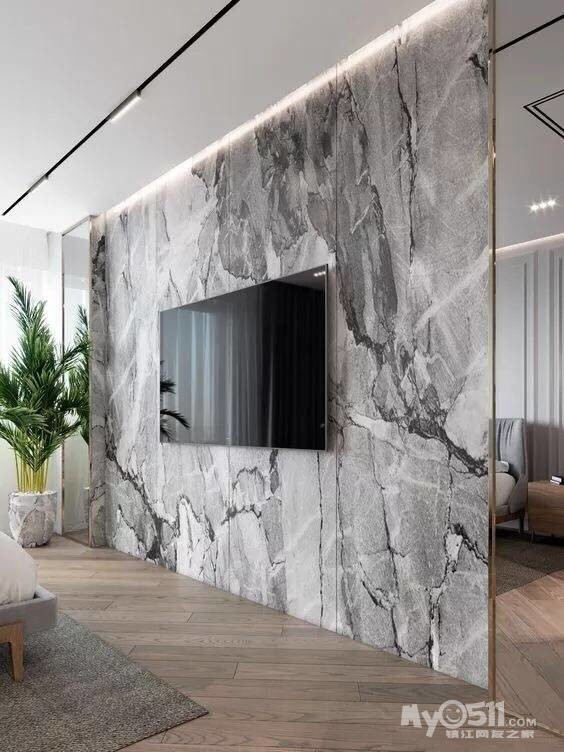石材或防石材的瓷砖电视背景墙,不仅外观高端大气,防火、防潮、防噪音,而且方便清洁,我觉得这也是很多人选择石材背景墙的原因之一,只需要简单擦拭,瞬间就崭新了。