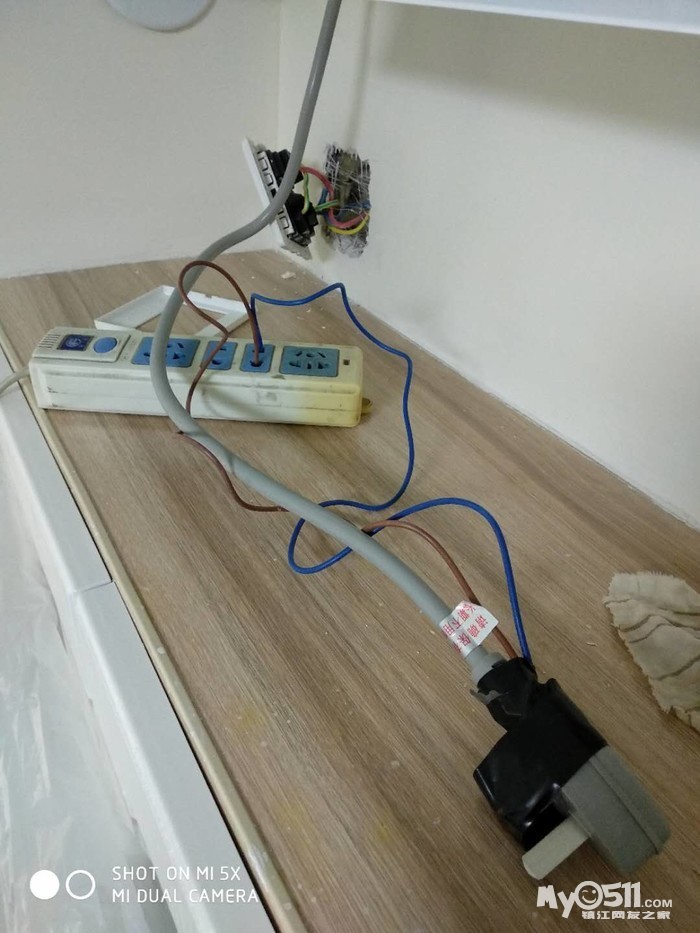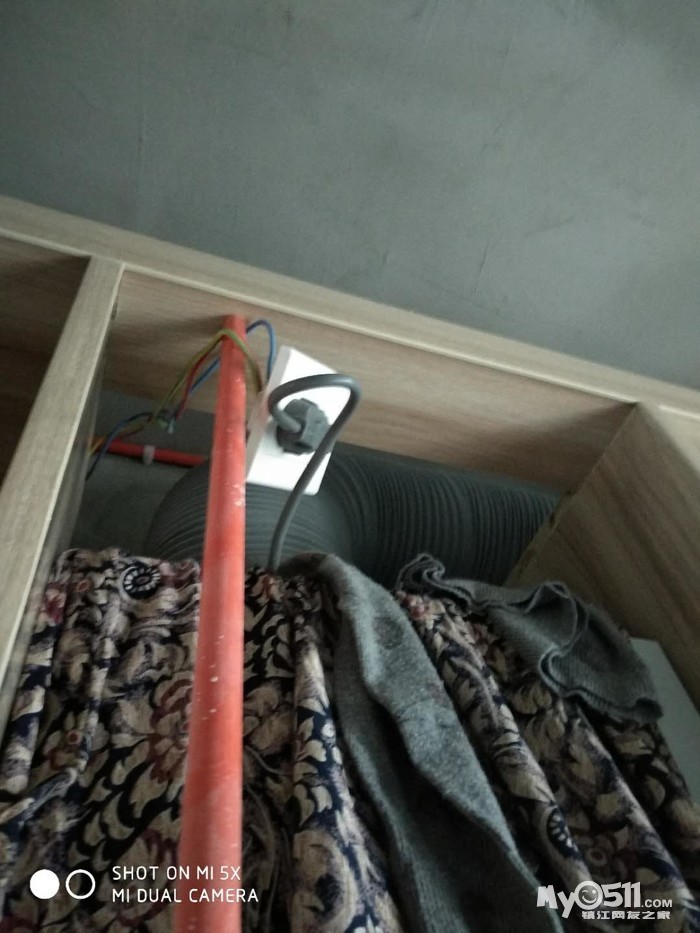 油烟机上的插座跟肚肠子一样随意挂着