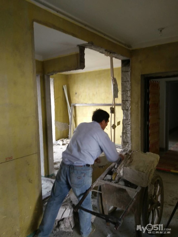 上班前去家里看了一下,墙已经敲完了,开始运垃圾了,明天早上可以约橱柜公司量尺寸咯