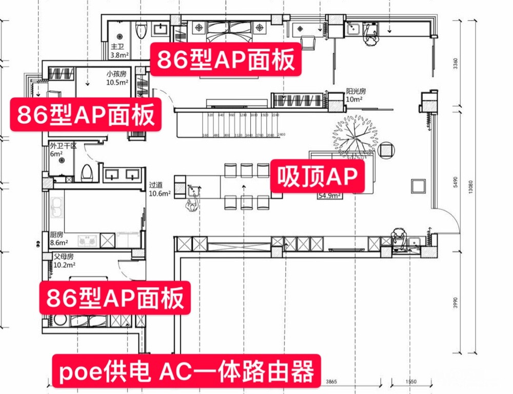 然后半夜两点 我默默的画了个一楼AP布置图准备带去现场,结果人家水电董师傅一听就知道不需要图