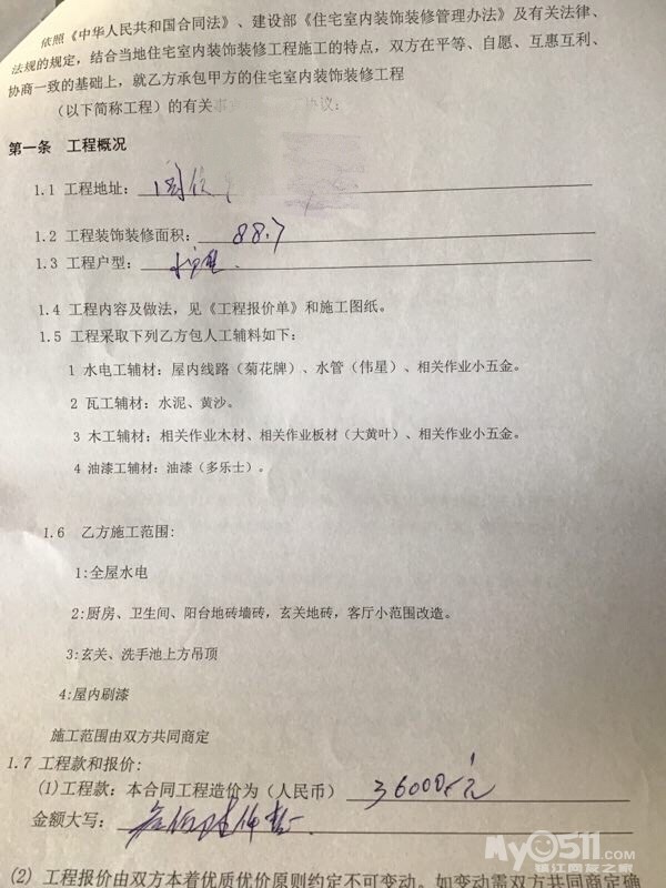 和男朋友认识是在2017年,谈了一年多,今年4月份开始考虑到结婚问题,然后每逢休息就一起去逛各大小区,因为两个人也没多大,今年买房说一个人家都会说可能脑子进水了吧,但是没办法,总不能结婚睡马路吧,新开的楼盘不敢看,偶尔去瞄几次长长见识,楼盘介绍拿了好多回来,无奈买不起,基本朋友介绍,0511看看,中介转转,丁卯,欧尚,吾悦,万达,中建都跑过,有的小区跑过几次,每次我们两去东看看西看看感觉都快被物业盯上,当成踩点的了[捂脸]跑了好多小区,脚上磨出了好多泡,真的没想到买个房都这么累,但是没办法啊谁让没钱呢,当时觉得和男朋友一起也觉得很幸福,想到未来也就不觉得累了,爱情的力量果然伟大,好不容易定了,然后办各种手续,贷款很多琐事,又忙了一个多月,一点不夸张,不是我们慢性子,关键找人办事难啊,跑这办这个跑那办那个,你急人家不急,慢慢慢慢弄,男朋友发了好多次火,弄的我也不开心,但是习惯了,可能我们就是一个佛系的国家吧,然后切入正题了,毕竟是家装贴,再不入正题会被举报吧,跑了几家,0511上也咨询过,人家来看过也报过价,后来决定选的时候,一个好朋友看到我发的朋友圈,她是婚纱公司的问我什么时候拍婚纱照,然后她家去年装的,说设计师挺好的,后期不乱收费,基本和她报的价一样,工期还比较快,主要人家把你事当回事做,不是那种天天看不到人的,我问了问价格,后来我加了他微信,跟他聊了一下,然后跟男朋友商量,磨了快一个月吧,男朋友是那种比较纠结的,只要一休息就让他开车带我们跑工地,有一次还碰到业主了,业主去打扫卫生,说了来看看装修工艺,业主很热情,夸小伙子不错,做事也不错,还有两个是大学老师,可能好学生都这样吧,永远把老师的话当圣旨,哈哈,然后就觉得放心了,签了合同,选的半包里面包含哪些,什么牌子都写上了,因为如果后期有问题我们也好说,当然谁也不希望有问题,也挺相信他的,现在男朋友跟他处的和朋友一样,他为人比较随和且实在,很多业主相处了都成了朋友,好了,流水账先记到这里,我要上班了,具体等有空更新哈