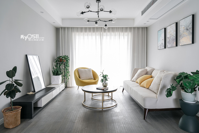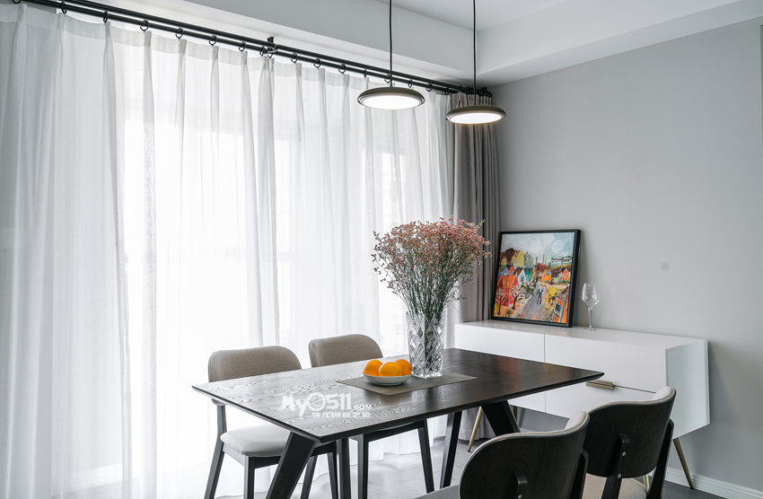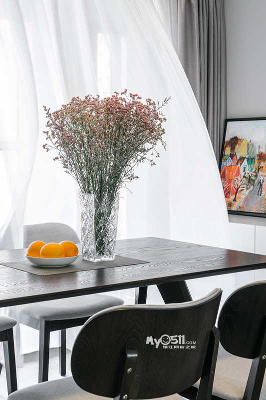 小妖觉得与其说是北欧风,其实更是简约,轻硬装,用软装来烘托业主的偏好,灰色调打底,再选取点缀空间的色调