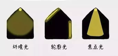 灯光的类别分为:环境光、轮廓光、焦点光。