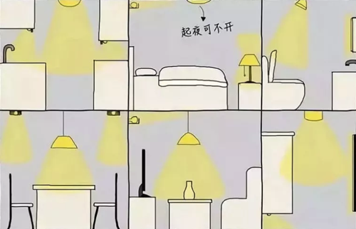 还要顾及到起夜的时候,一室一灯的不好就是起夜的时候,光线对从黑暗中睁开的人眼来说过于刺激。