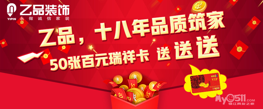 [优惠促销] [已公布]任性!乙品装饰给镇江人送钱,100元现金卡任性送!手慢无!      查看: 17290  回复: 8