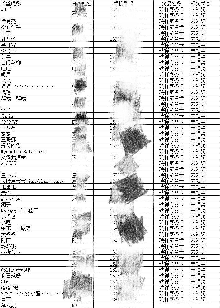 名单公布,恭喜这50位小伙伴!!!