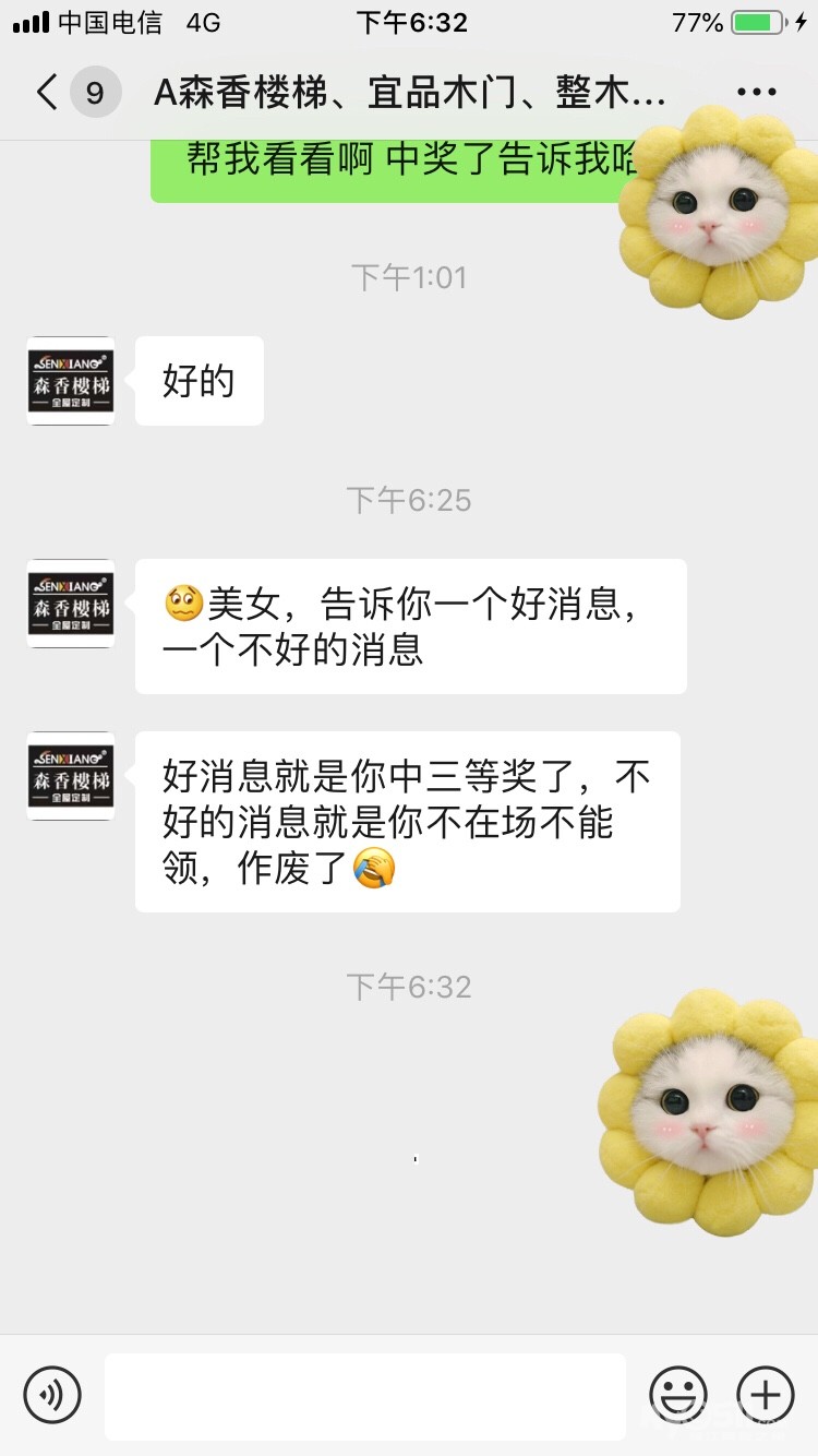 今天去参加了0511举办的家博会,初步选定了森香的楼梯,然后参加抽奖,没想到居然会中奖,但我又不在现场。心塞塞啊 我的彩电啊……与我擦肩而过啦