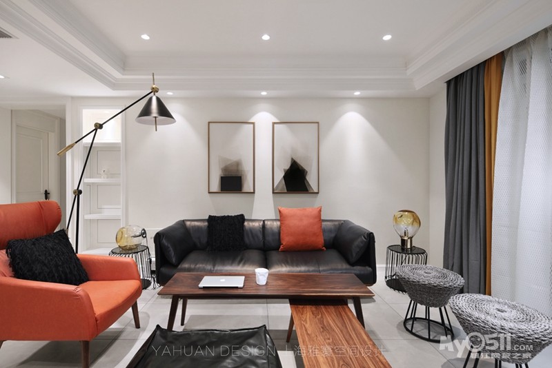 白色、黑色、橘色微妙组合,时尚又凸显个性,在柔和灯光的照射下,整个空间变的更有格调和气质,浑然天成。