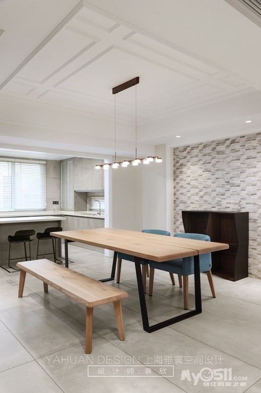 精致打磨的直线线条将空间切割得利落分明,橱柜、桌子等设计都以简约流畅为主,