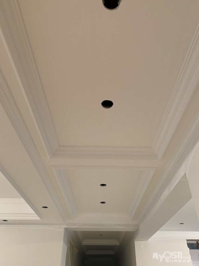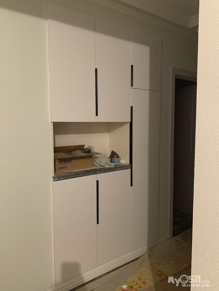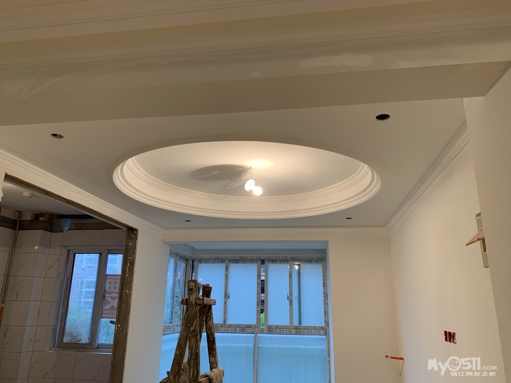 距离上一次发照片已经过去了将近一个月,之间经历了美缝、木工打柜子、吊顶,现在漆工进场施工中。家装本就是一个边装边修改方案的过程,吊顶的时候我们临时改了在餐厅的位置吊方顶的计划,改吊圆顶最后效果很不错;打柜子的时候我们选择在走道柜体中间镂空了一部分,做成装饰柜,并且内嵌了穿衣镜;主卧的柜子原本的设计,转角部分是90度大直角,比较死板不美观,后来又选择不做柜门,购买了360度旋转衣架做成镂空,形成柔和过度的效果。。。这些都是装修过程中的宝贵经验啊。一个月的时间,几乎每个周末都是在镇江各大建材市场连轴转的节奏,期间确定了坐便器、柜体五金件、柜门、集成吊顶、晾衣架,新更换了移门店家,基本确定淋浴房店家,昨天还提前去月星看了灯具,但最头疼的还是背景墙的设计。对于电视背景墙由于两个暖气片占用了过多的位置,导致墙体剩余宽度不到2米,最终只能放弃了石材、墙纸的方案,改由整面墙整体做造型,材质选了硅藻泥,客厅、餐厅和走道也都选择了硅藻泥,昨天去谈了预想的设计,期待效果图出来。