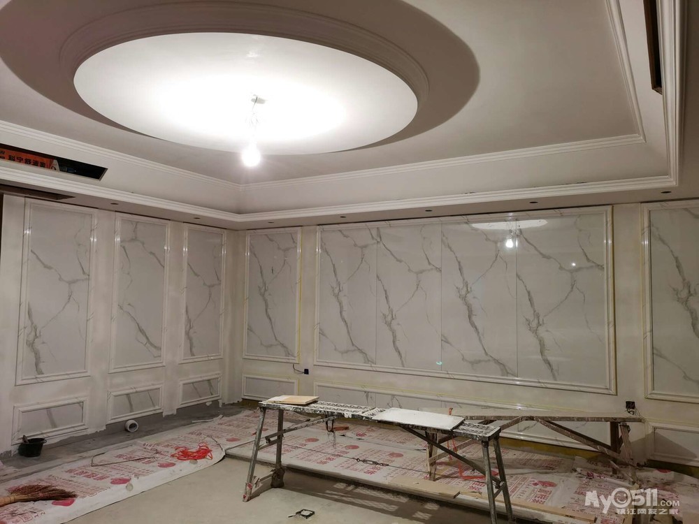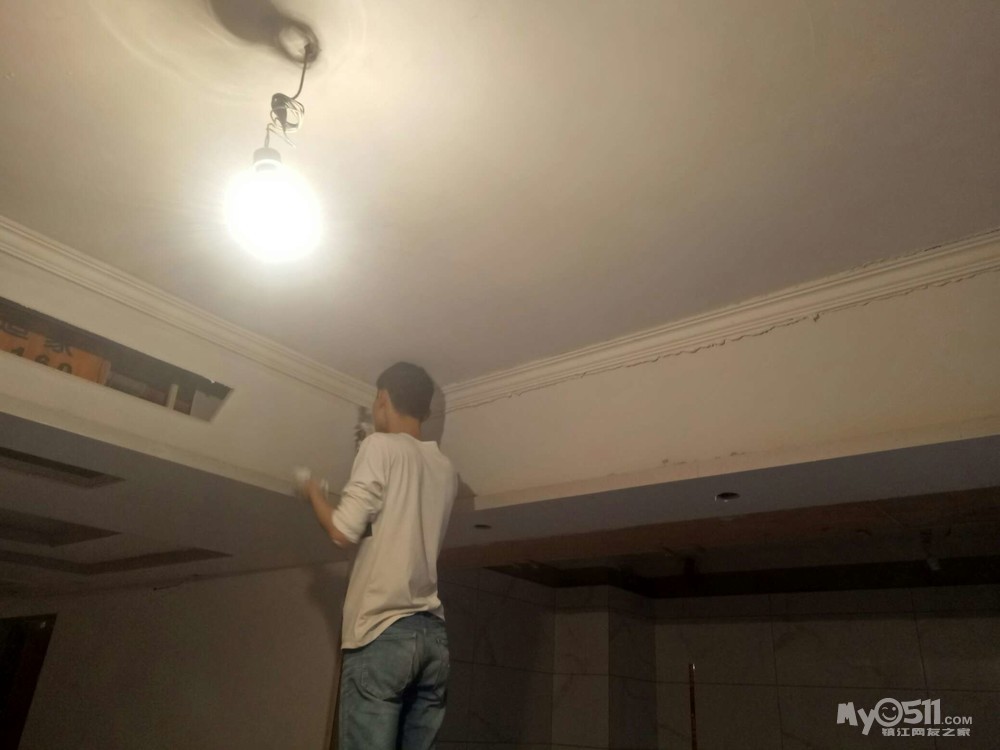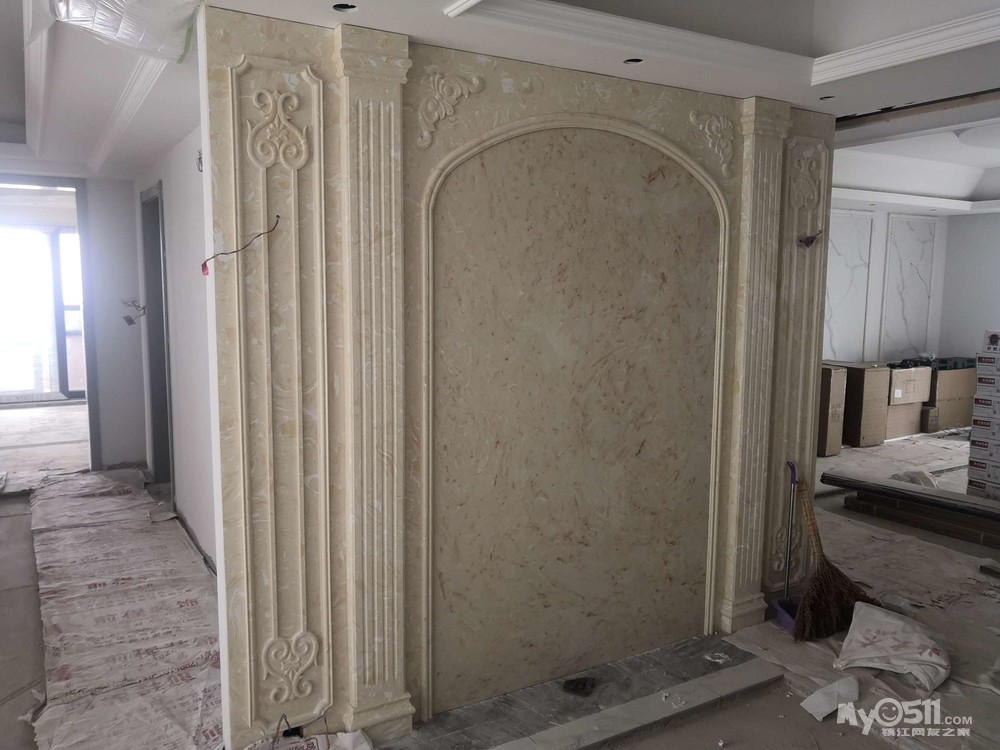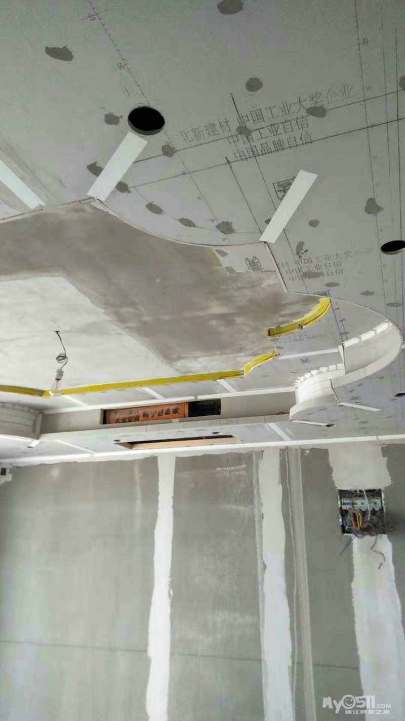 今天周日,石膏线条进场开始铺贴,腻子第一遍也快好了。这二个施工都没有声音。