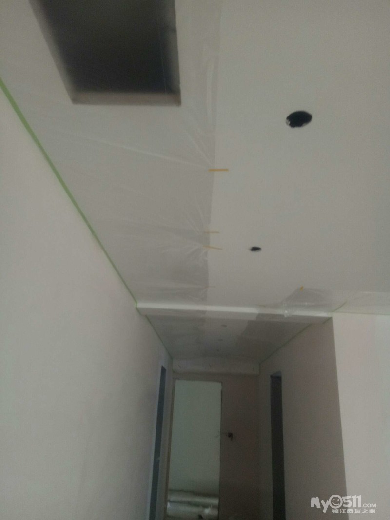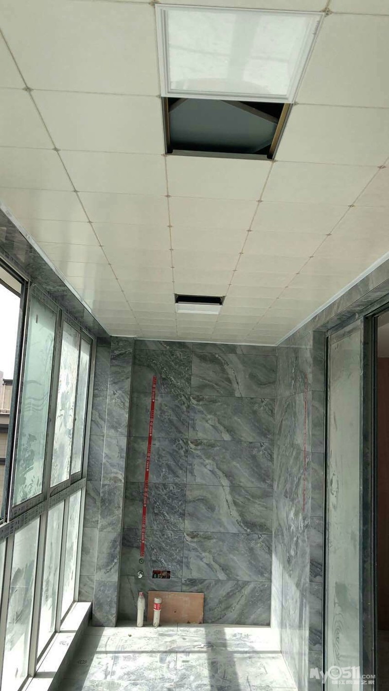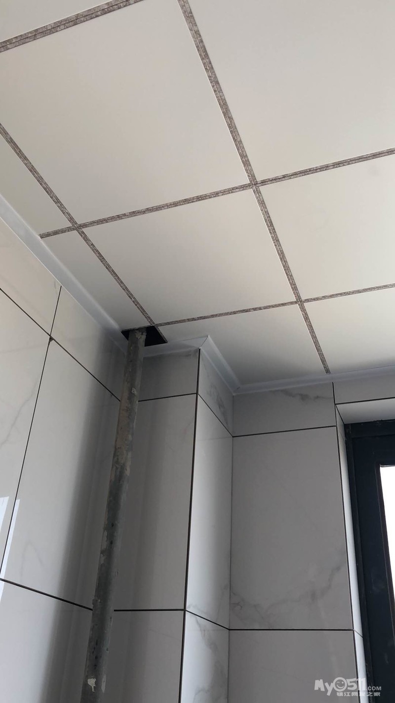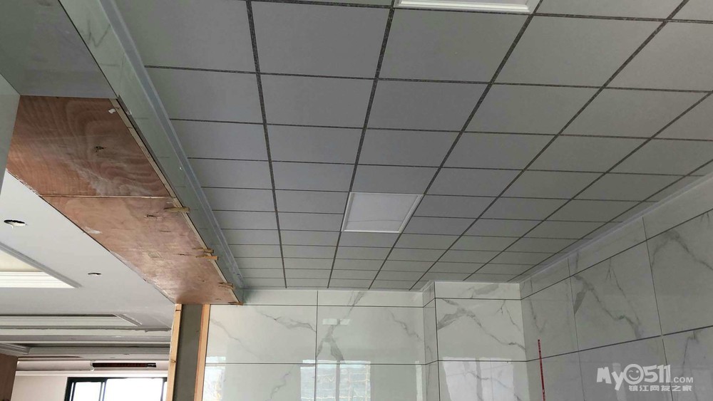 吊顶都好了,主卫是防水石膏,不要吊。电梯口,次卫,阳台,厨房全部搞定,厨房用的单色的,装了二个300*600的灯。这样厨房间非常亮堂,头发丝都看得清,不会弄菜里面去了