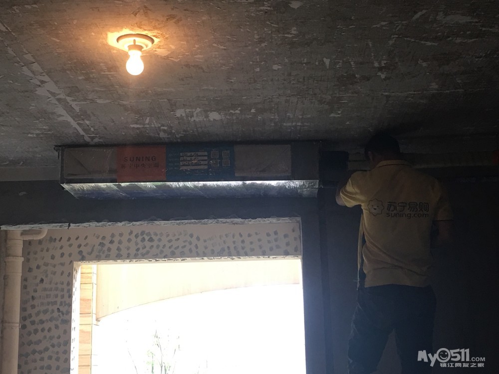 空调安装师傅今天先来打孔,这两天先把风管机装了。
