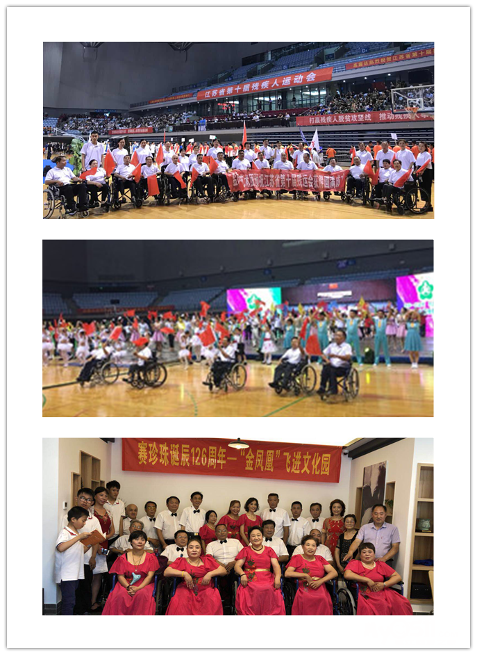 残联金凤凰艺术团:镇江市京口区金凤凰艺术团,团长胡红娣分别是镇江市、京口区音乐家协会会员,镇江市文化馆监事,京口区最美京口人、最美文艺志愿者,2017年团队被评为镇江市优秀群众文艺团队,获得京口区文艺团队大比拼一等奖,荣获2018年度京口区优秀社会组织光荣称号,团队长期扎根基层,坚持参与基层文化志愿服务活动, 弘扬奉献、友爱、互助、进步的志愿精神,在做好健全人文艺工作的情况下,同时重视残疾人文艺的发展,成立了镇江市首个残疾人合唱团,多次参加省、市、区、街道的汇演,受到社会各界的好评。