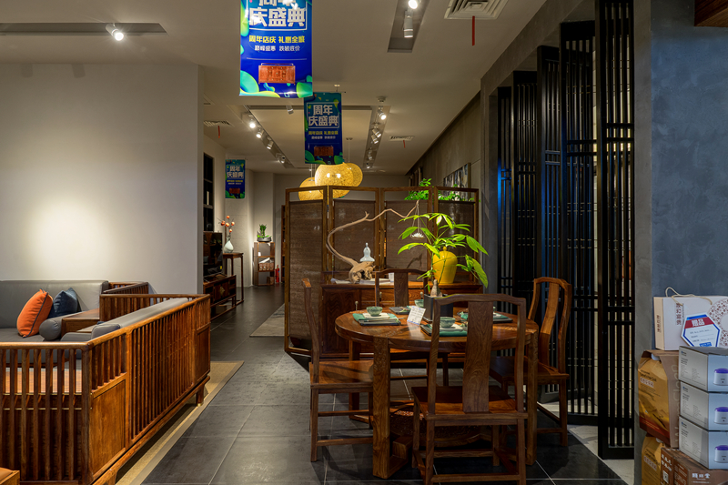 踏入颐品堂,一种时代感扑面而来,看起来古旧的中式家具,极具人文气息