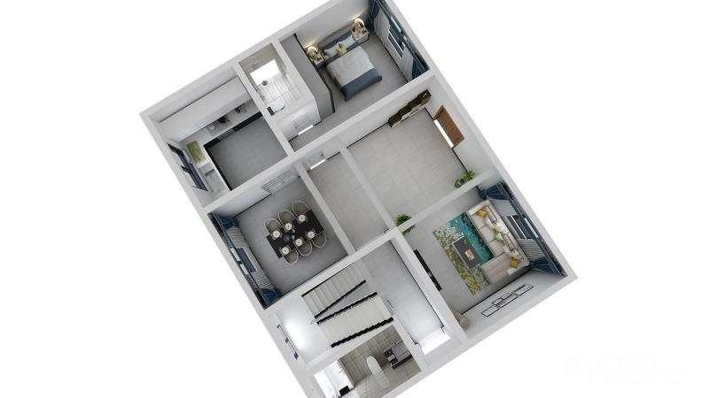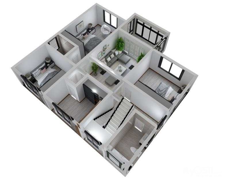 第一层全部地砖(东鹏80*80)灰色。第二层全部肯地亚地板。