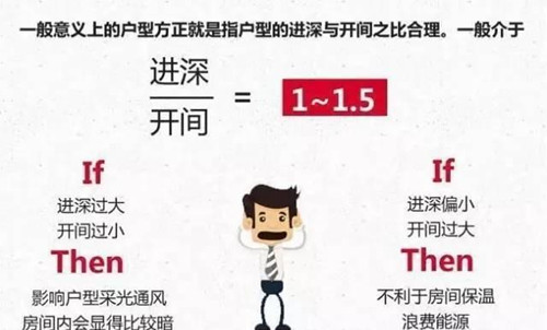 如果比值过小,即进深小开间大,就会影响室内的保温效果,冬天和夏天自然需要消耗的能源来保持一定的温度。