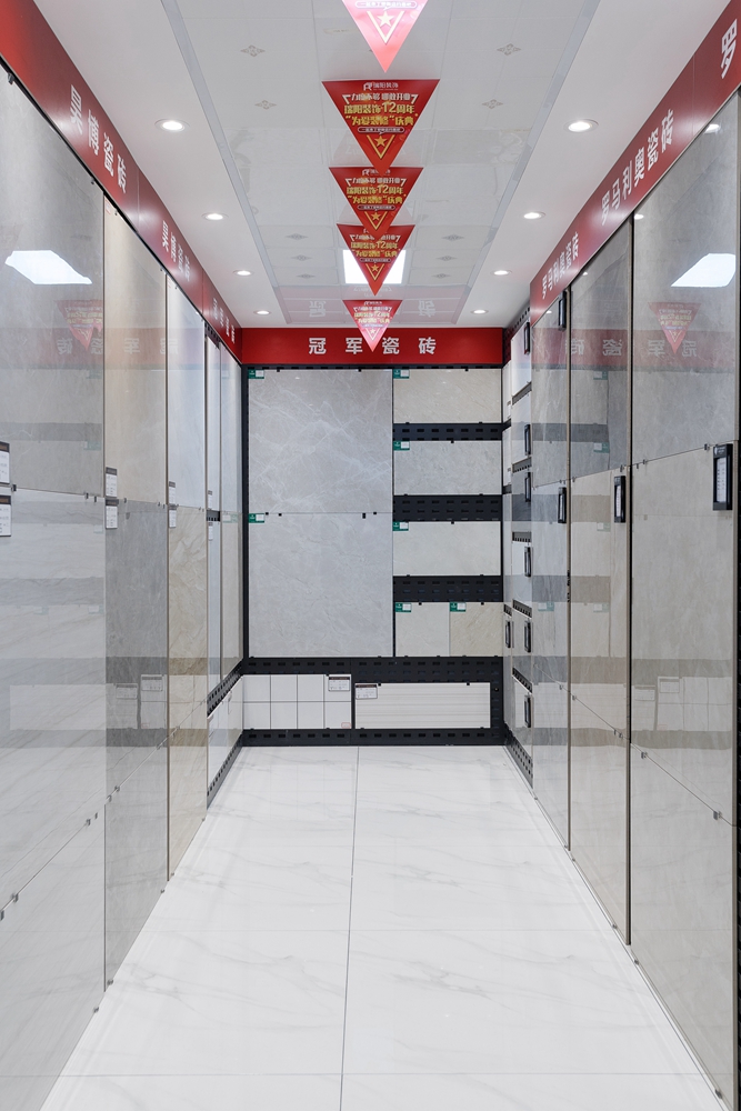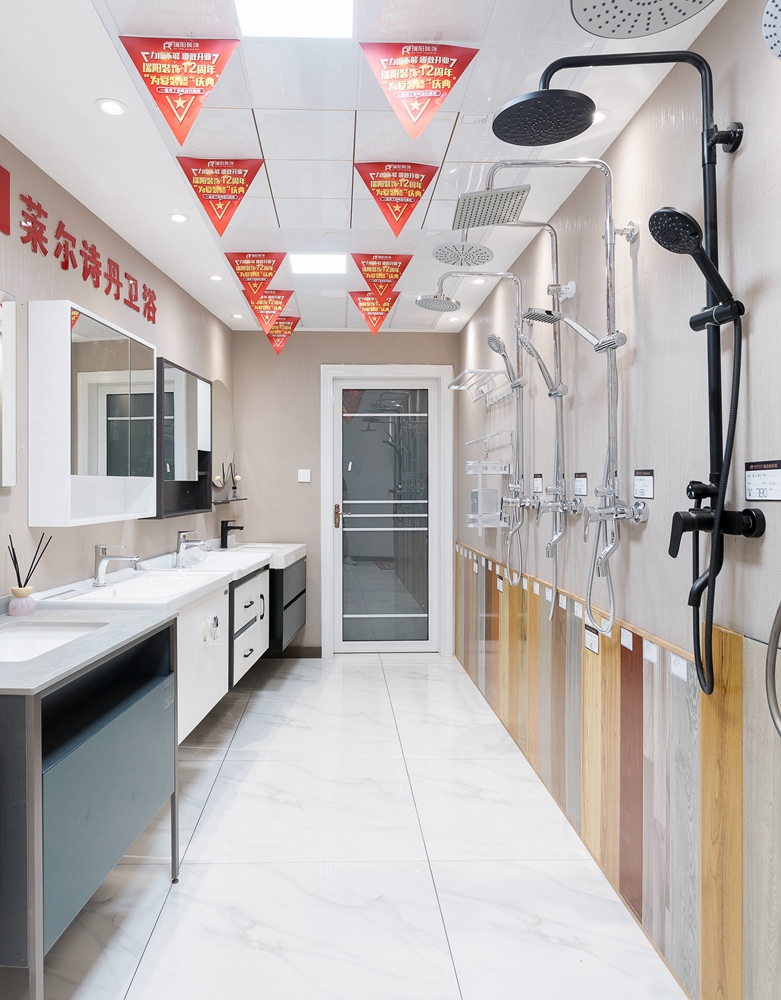 主材展示以佳品见长,既充分利用了店面空间,又基本涉及家装的主要建材,