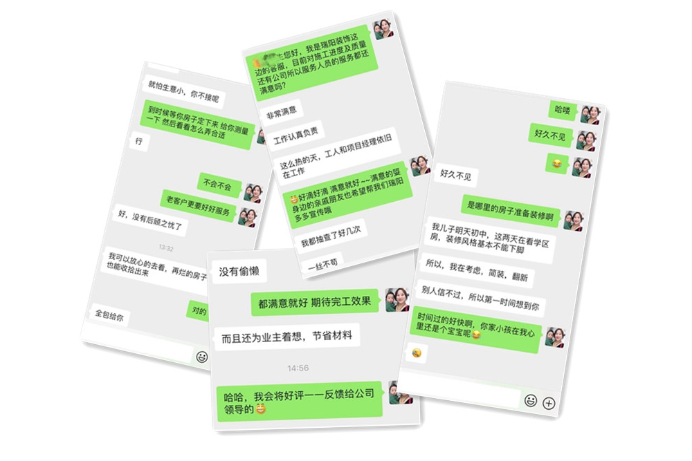 每一次装修都是交朋友,瑞阳用心经营口碑造就高转接率,字里行间无不透露出瑞阳对业主的那一份责任心,让业主都可以放心的选择瑞阳。