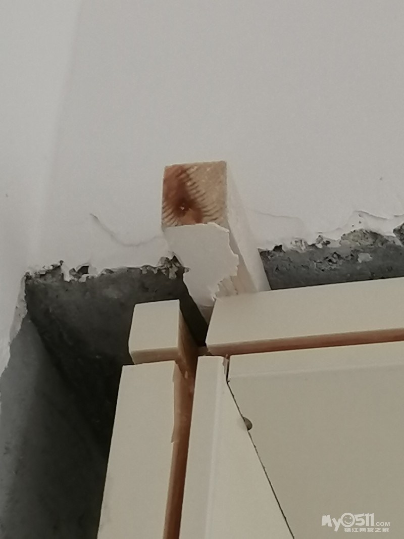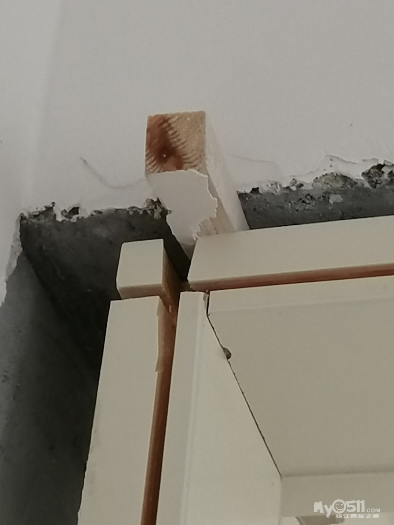 门套组件破败,门套板与墙之间完全不贴合,且距离起码一拳!