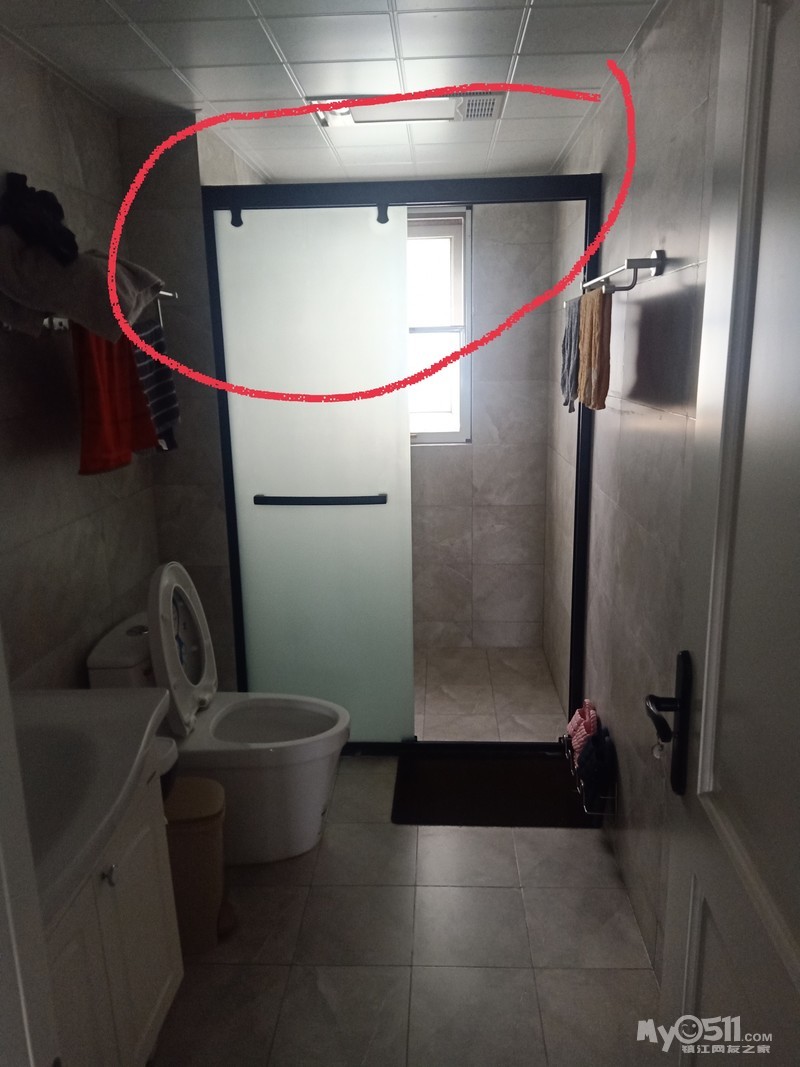 图片是我主卧房间的卫生间,我想我这拉门外面有木头材料,洗澡时候有雾水出来,导致玻璃上模糊,请问大家要不要再划线的地方加玻璃封顶