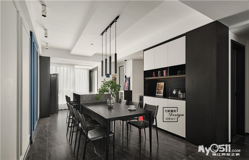 餐厅做了充足的收纳,过道一侧做了定制的收纳柜,