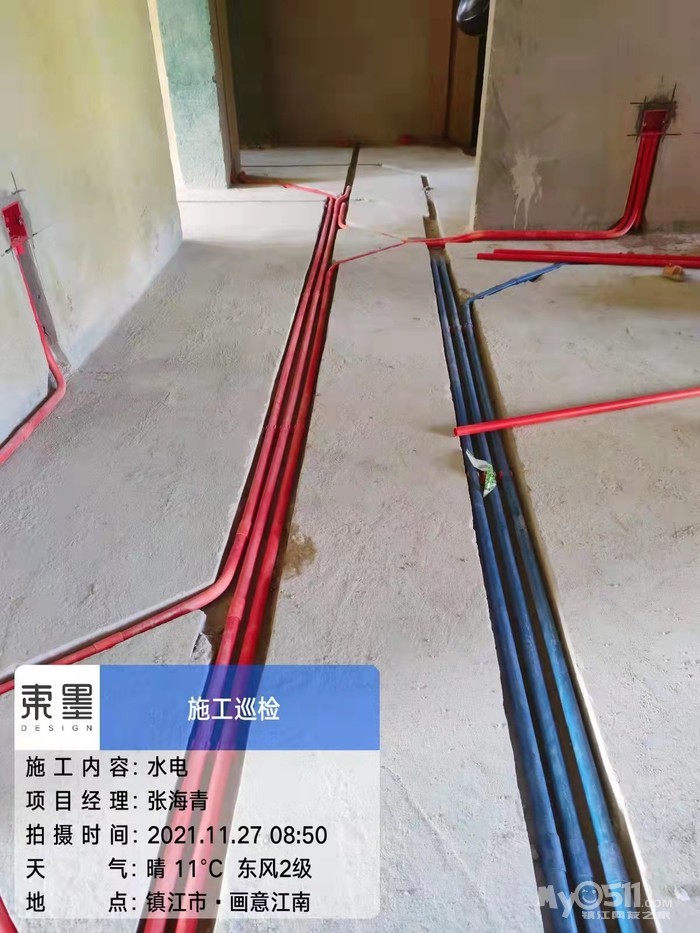 原本还没有开始,没想到一早就看到整齐点线管铺设了一大半,师傅们辛苦了!