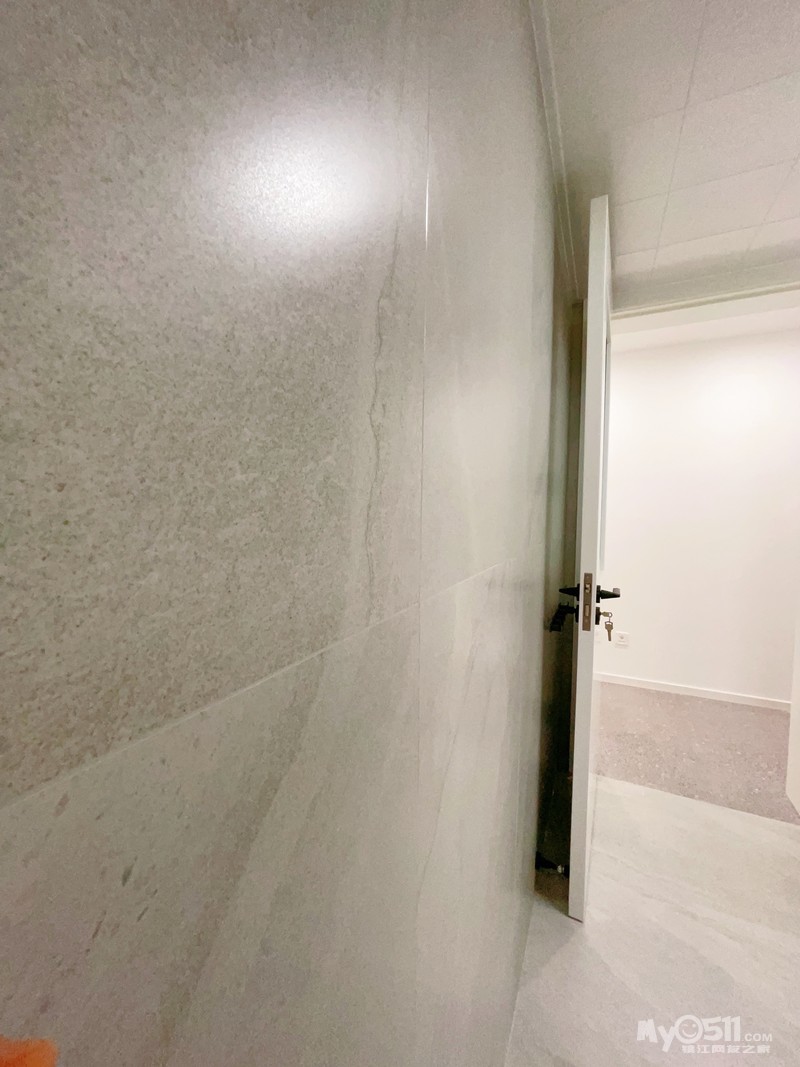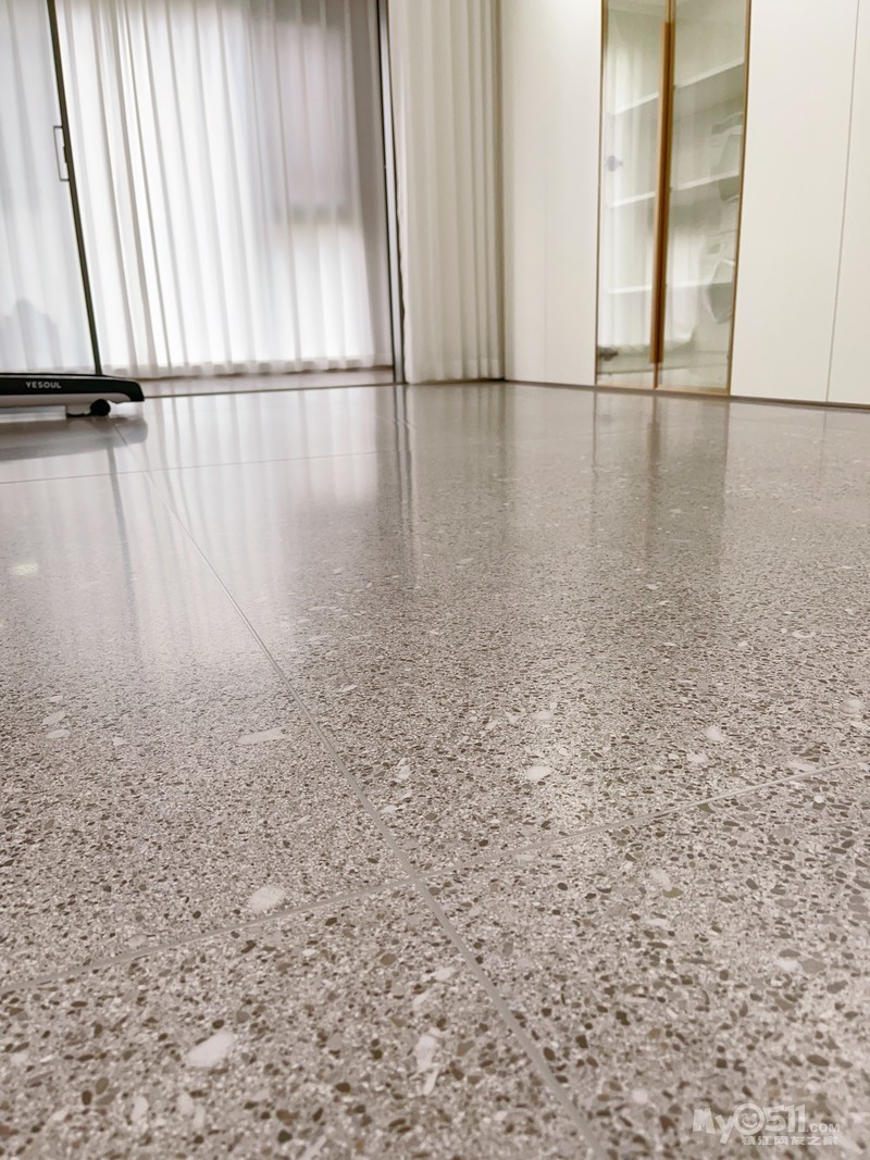 铺贴前是忐忑不安的,金意陶水磨石糖果釉砖到家感觉有点黑,铺好后感觉还好。缔博的瓦工师傅手艺不错,金意陶事先排好砖,师傅按图拼贴,入户门、房间门口都没有装过门石,大砖通铺到阳台和书房,一共用了70块150*75的砖。