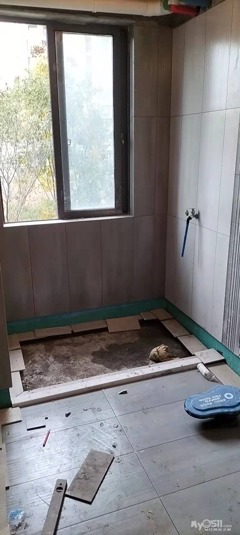 今天互损中把淋浴石材和窗台石定好了,因为瓦工没有问我的情况下勤快的把四周用瓷砖贴好了,本想敲掉的,考虑是否会影响防水,还是就着瓷砖色选石材吧