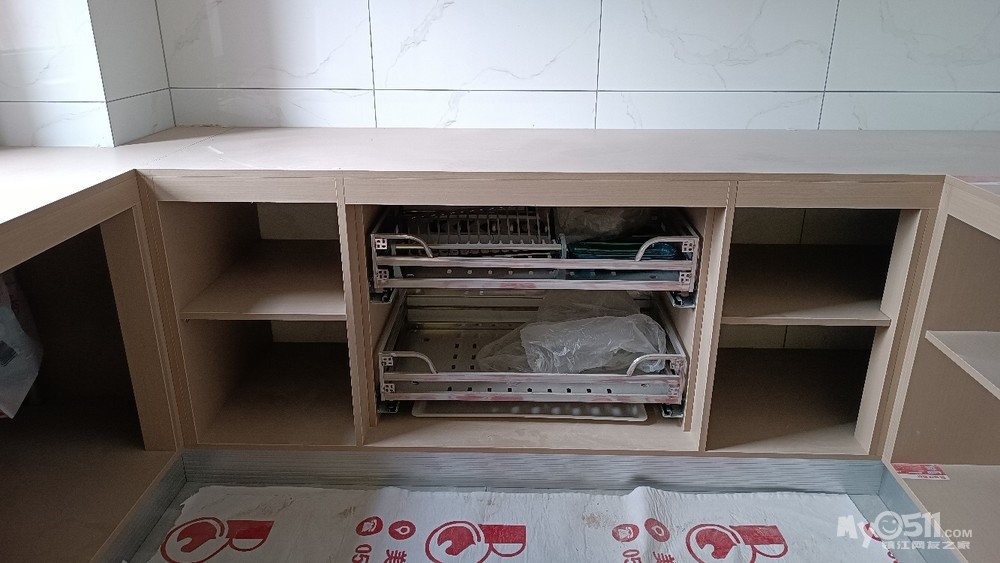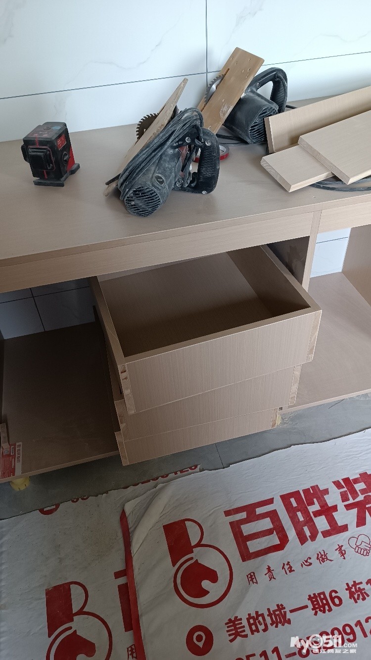 今天马总带着木工来现场确定怎么打橱子了,等美缝师傅完工后木工就准备进场了。