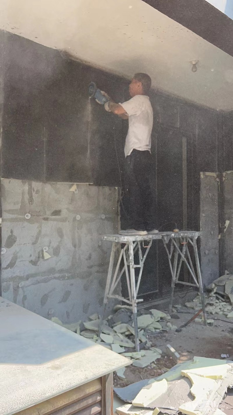 装修这么头疼的事,加之房子面积不小,露台院子也多,如果不找一家靠谱的装修公司,恐怕接下来我们的班也上不成了,我们俩的工作都属于那种时间固定,不自由的人,就是因为要寻觅装修公司,所以装修的事一度被耽搁了好久。后来也是巧合,我换了办公室,办公室里的一位同事家里刚刚装修结束,极力向我推荐她家的装修公司,也就是我找的这家“金缔装饰”,说也是朋友装修完向她介绍的,整个装修了一个叠加,我同事说她自己去房子不超过八次……因为忙,再加上两个孩子,说装修经理帮了大忙。听到这,我突然心动了,就约了去量房。这家公司倒不大,算是“夫妻店”,老板是管理者也是项目经理,老板娘负责设计,一开始我们对小公司有点犹豫,接触了几次,发现俩都是实在人,做事一板一眼。后来有一次让我决心就定在他家做,是因为我家有一处漏水的痕迹,我们就想做防水的,那几天镇江接连下大暴雨,曹总连续几天都往我房子跑,下完雨就去,用纸巾印在漏水点上,看看具体漏的情况,讲实话这一点可能是很多大公司里的项目经理做不到的,他因为是自己开的公司,靠口碑存活,所以后来我放心地把自己的房子交给他去装。前期的设计,改了很多稿,我们在群里,无论多早、多晚找他们,必有回应,这几天拆墙了,因为种种工作原因,拆迁期间我们一次也没去真是最懒业主了,今天周末去一瞧,垃圾堆放得很整齐,原本以为杂乱的房子倒是干干净净,有部分垃圾正好填到地下室去,曹总基本上一天都要去个两次。砸了移门之后的卧室明显变大了,双阳台非常敞亮