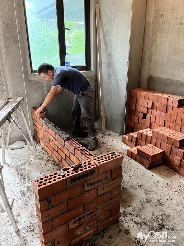 砌墙,基础改造在二楼比较多,通过砌墙将原本主卧的衣帽间外移,除了空间利用以外,我还有个小心思,就是房间里不想做很多的柜子,天天呼吸间难免吸入有害气体,而且衣服容易杂乱影响心情。这样外移之后,换衣服的工程就在外面的衣帽间完成,哪怕杂乱一点也眼不见为净了~