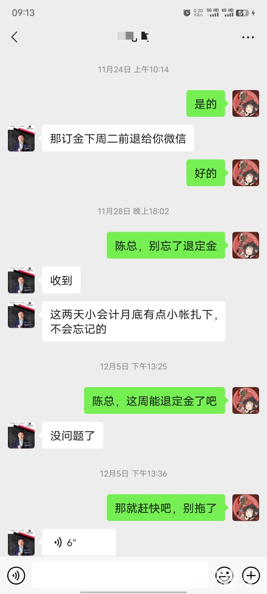给大家避个坑,镇江华舒装饰设计工程有限公司,从2023.11.24开始说给退定金,一直到今天不停的拖,大家谨慎交定金