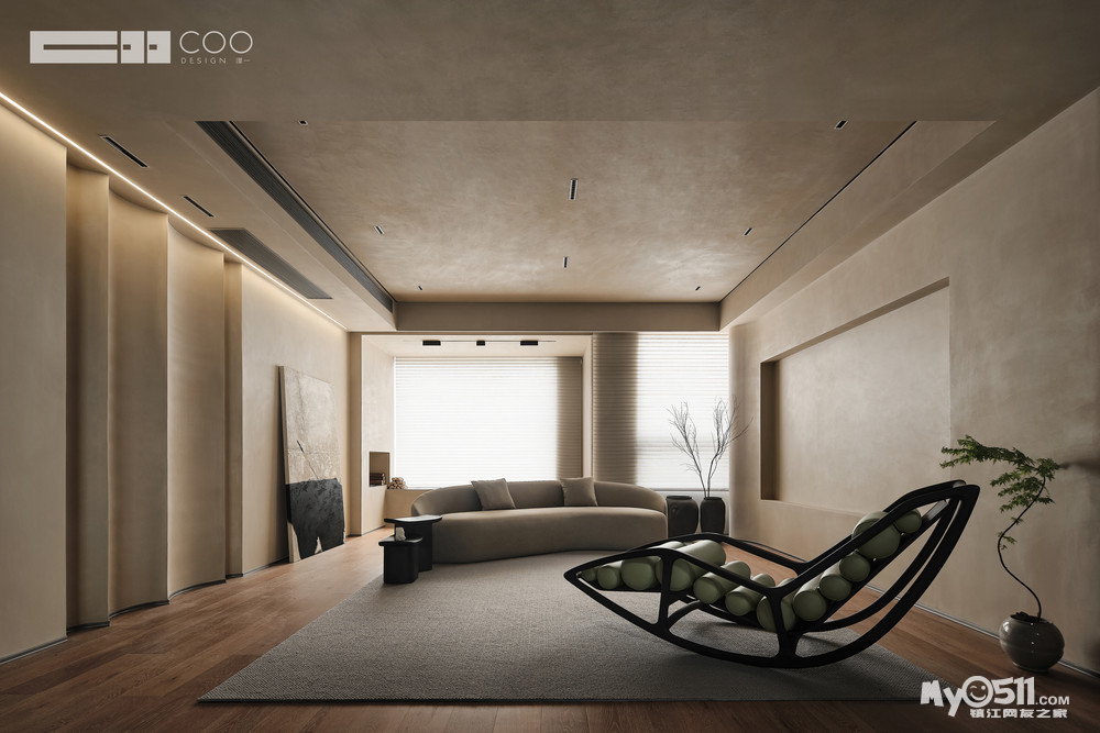 全屋使用墙顶一色的肌理渲染出一种自然、宁静的氛围,造型上通过圆弧的过渡,让空间拥有了被风吹过的飘柔,飒的感觉迎面扑来,让人的情感在空间中找到共鸣,享受岁月静好的生活。