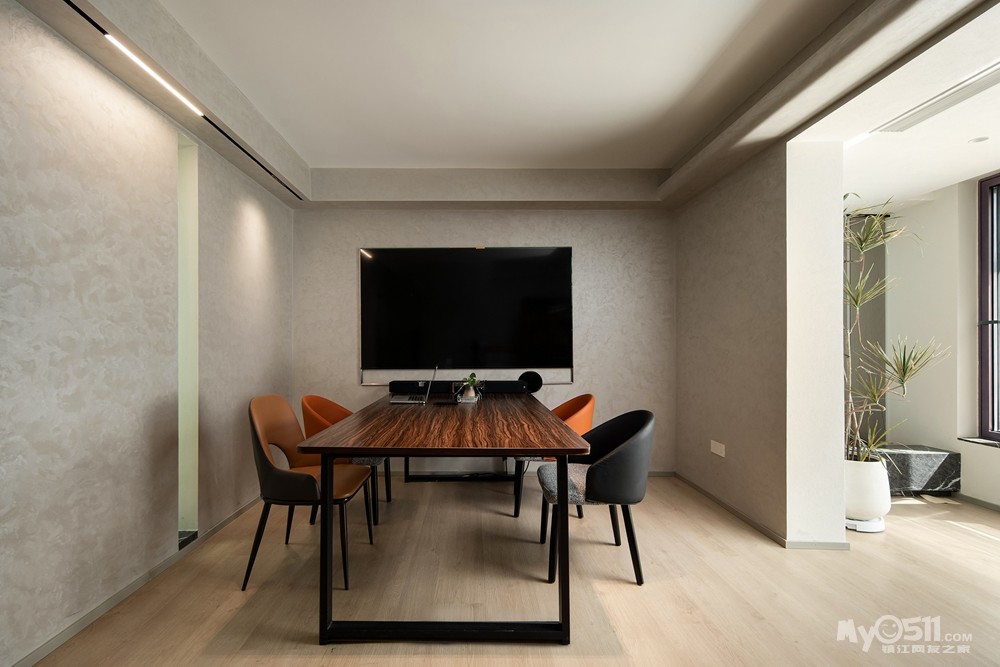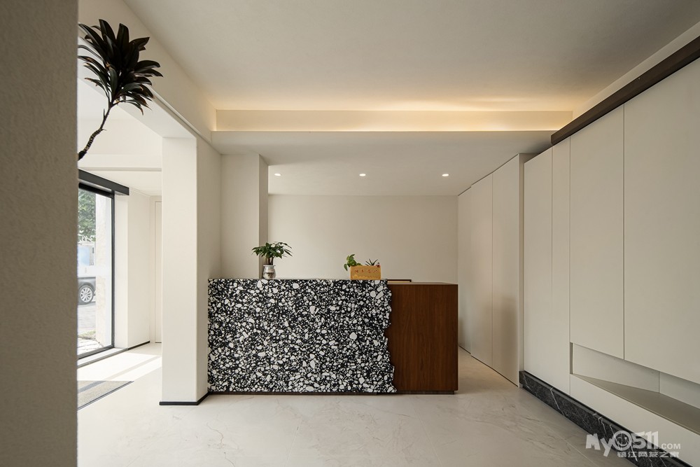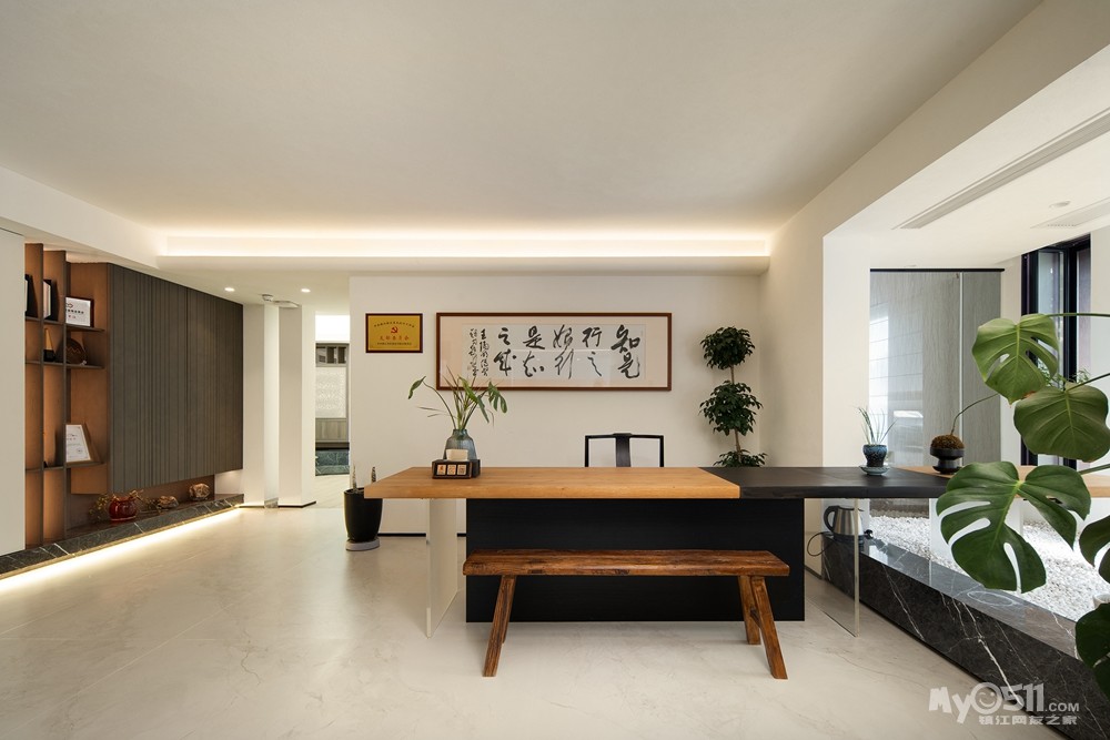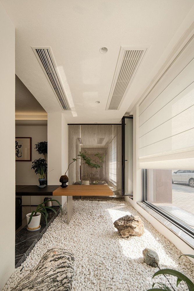 室内点缀少量绿植,通过自然的肌理克制表达,