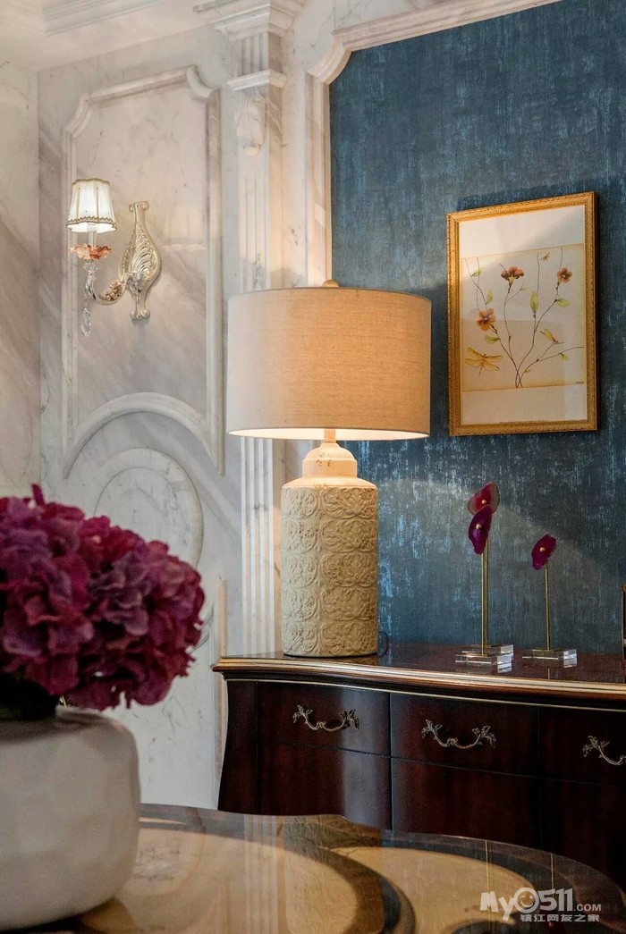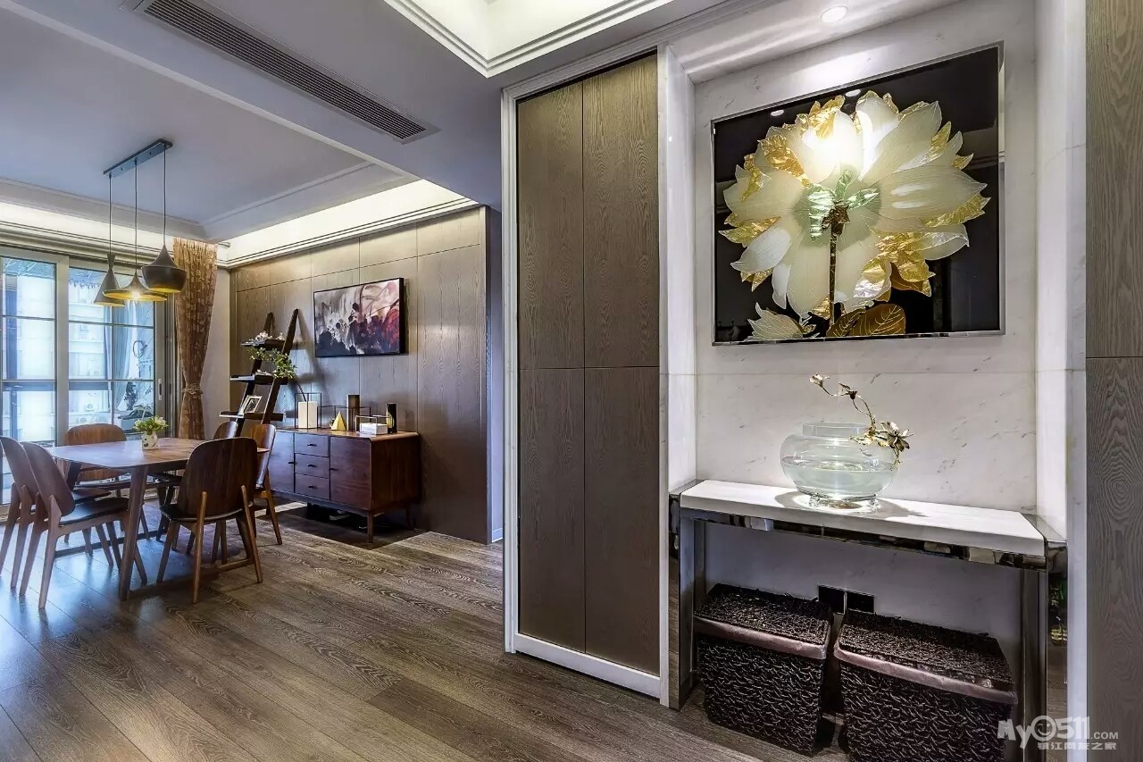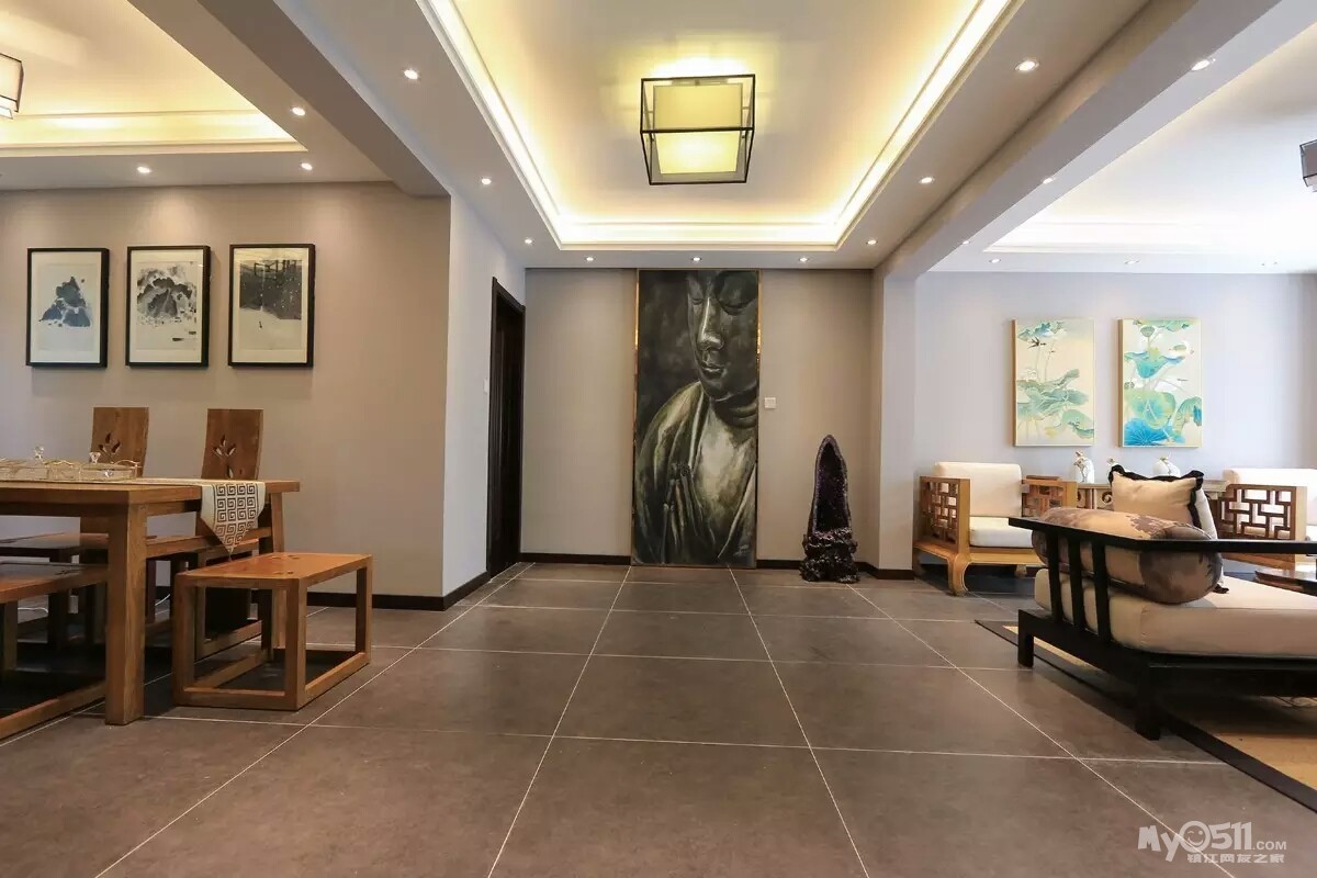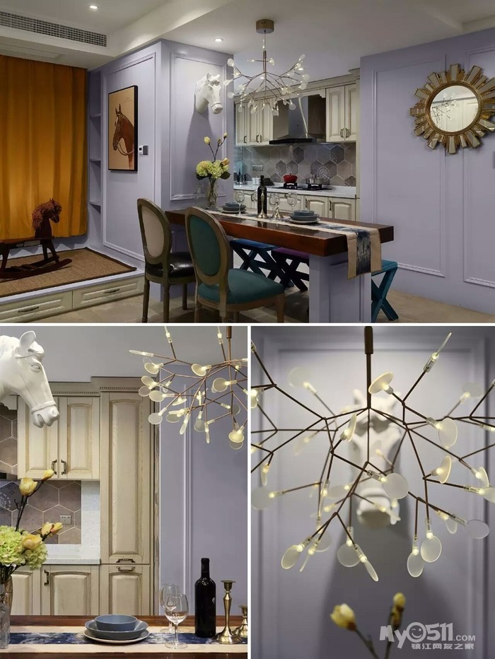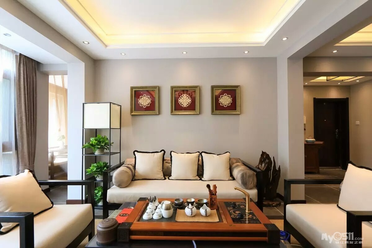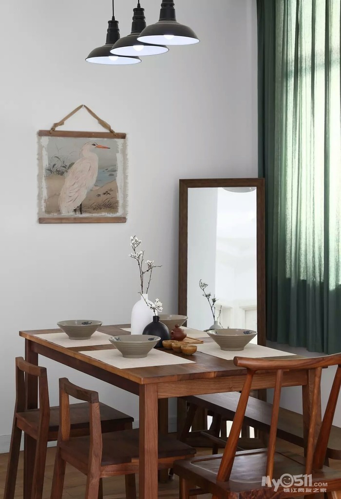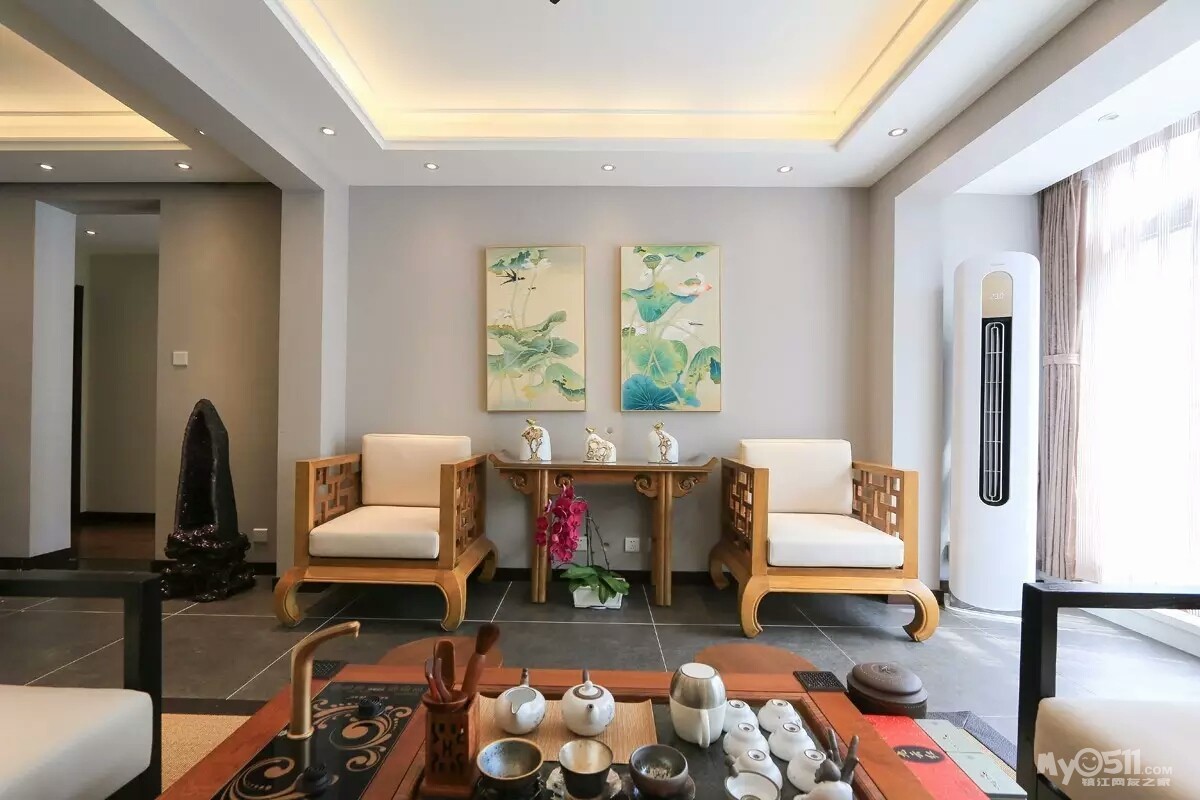“我在了解老两口的实际情况后,做了一个中式折衷主义的风格,在设计上运用了穿透、序列、山水禅意的手法和韵味。把苏州园林“隔而未隔”“界而未界”的感觉引到老人家中,在装饰画中运用的现代油画和苏绣的不同材质结合,让老人再次梦回苏州。”