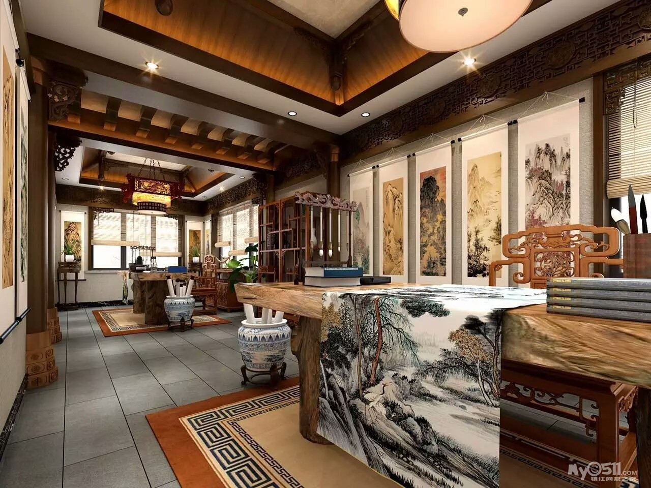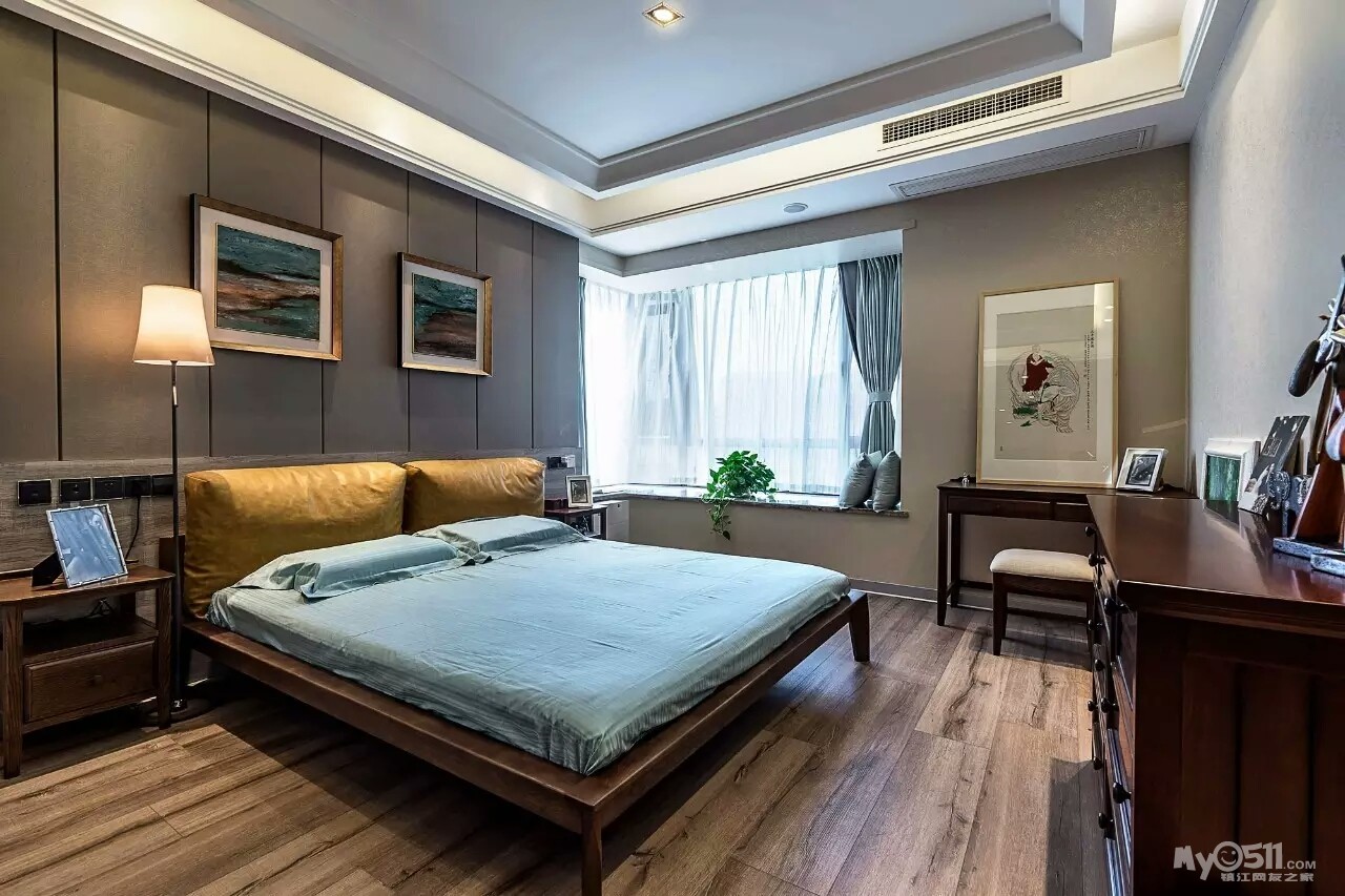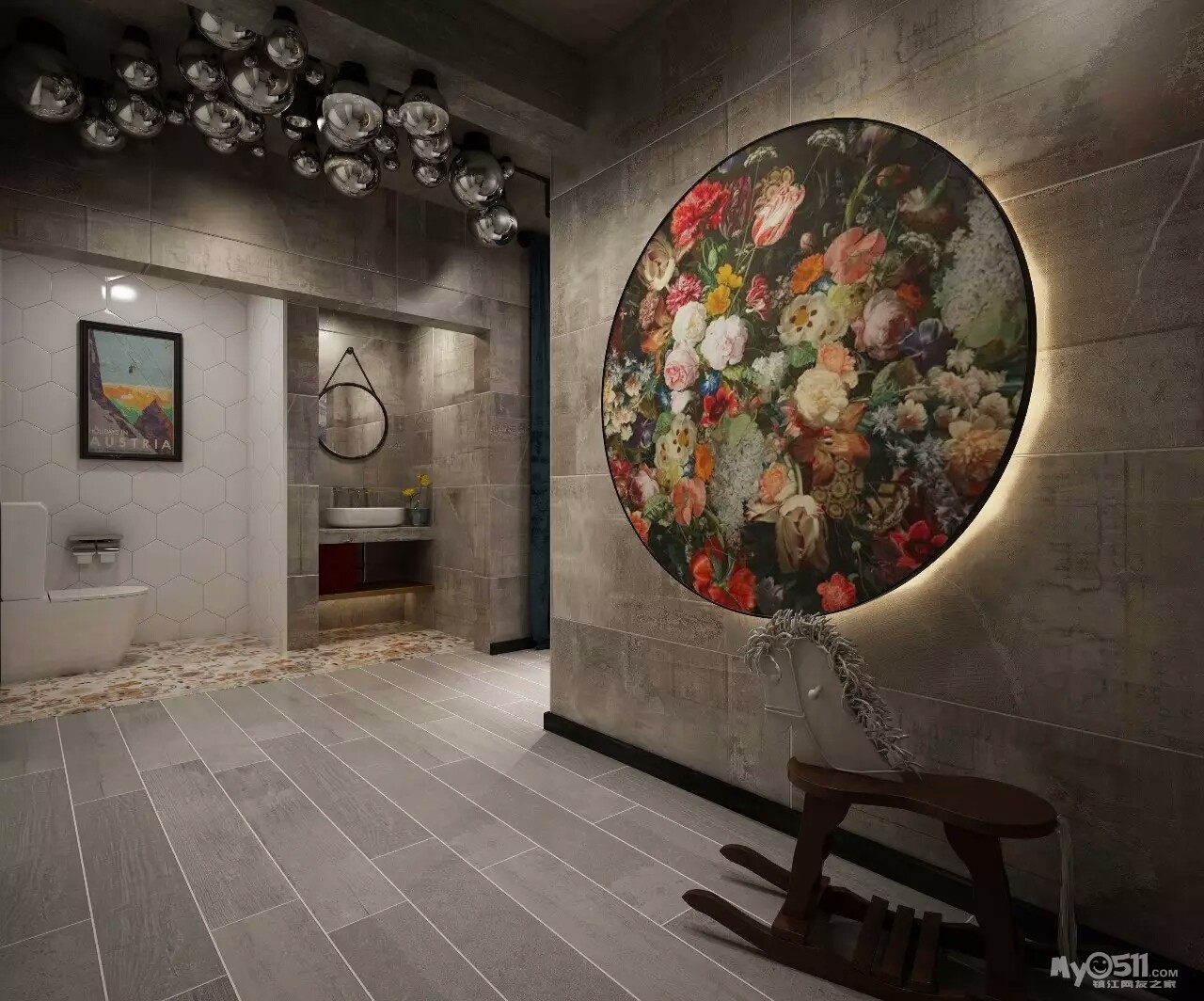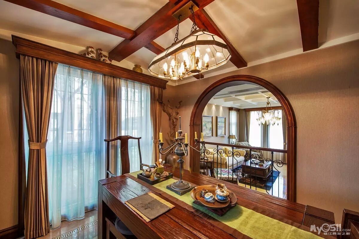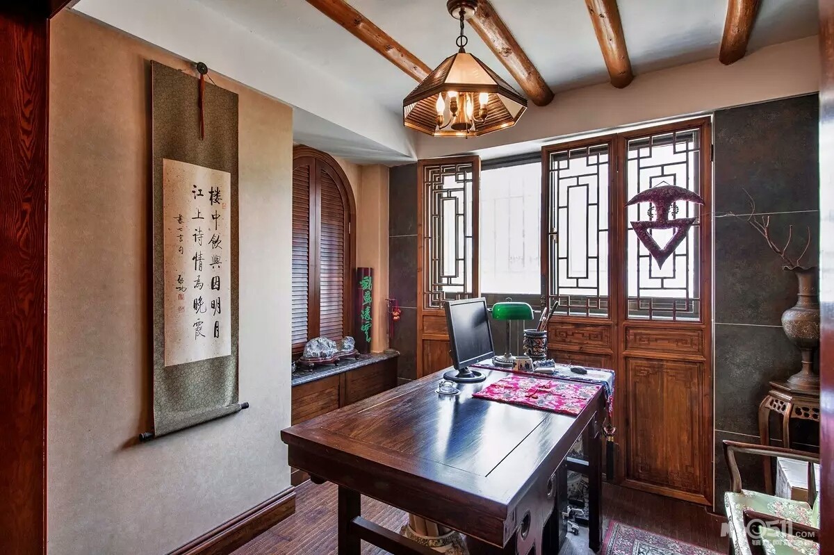 “我在了解老两口的实际情况后,做了一个中式折衷主义的风格,在设计上运用了穿透、序列、山水禅意的手法和韵味。把苏州园林“隔而未隔”“界而未界”的感觉引到老人家中,在装饰画中运用的现代油画和苏绣的不同材质结合,让老人再次梦回苏州。”