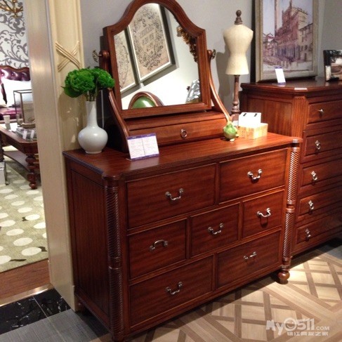 美式花的粗大块头,掩饰不住细节处的精巧。比如美式花的五金装饰往往非常考究,小小一个拉手会有上百种造型,这些小玩意使美式家具更具风格。仔细比较美式家具和欧式家具在细节上的处理,你会发现美式家具的油漆以单一色为主,而欧式家具大多会加上金色或其他色彩的装饰条。