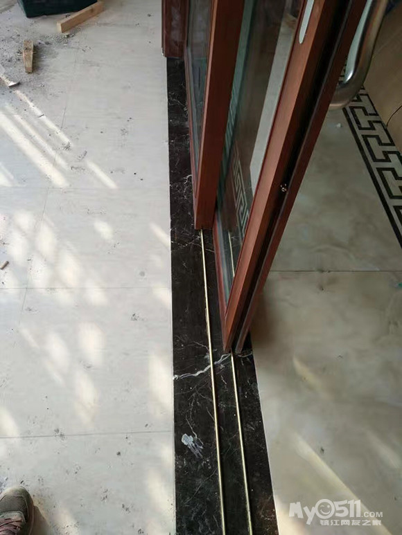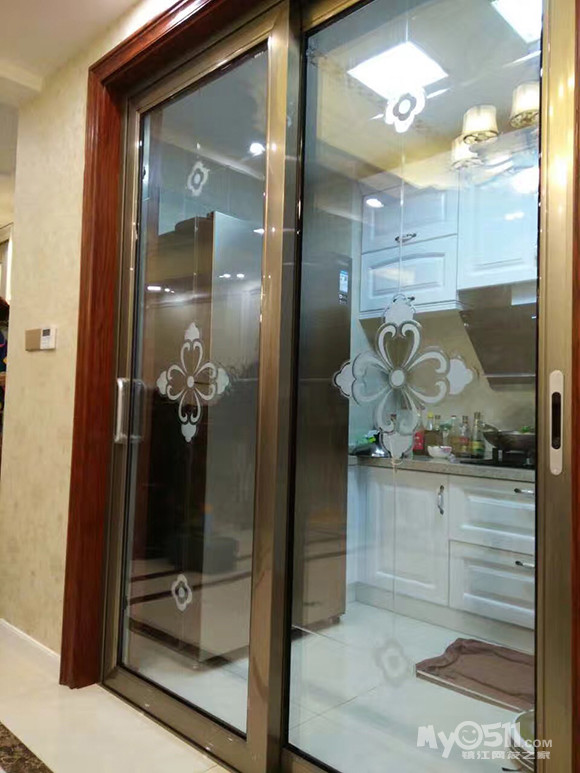 象山花园客户家厨房门,铜条地轨既稳定安全,又容易打扫卫生。