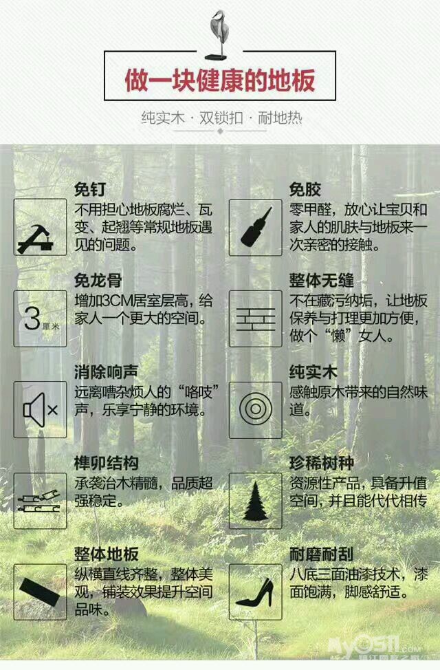 中免钉免胶免龙骨,还可以重复使用。特别是我们的负氧离子实木地热地板,采用多道高精科技,使负离子能够持久释放,这些都是当下很多所谓的负离子建材产